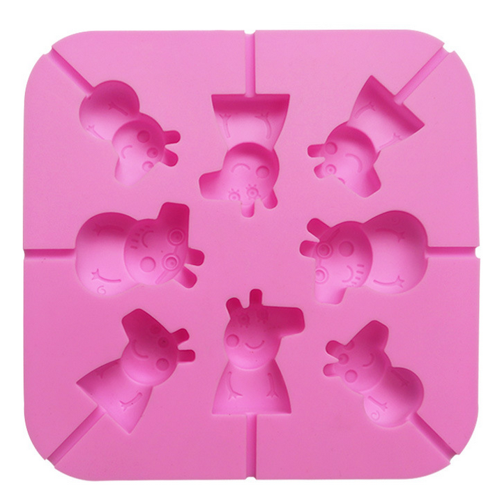 Khuôn silicon làm rau câu, socola, kẹo mút 8 heo con Cute Peppa – Mã số 1056
