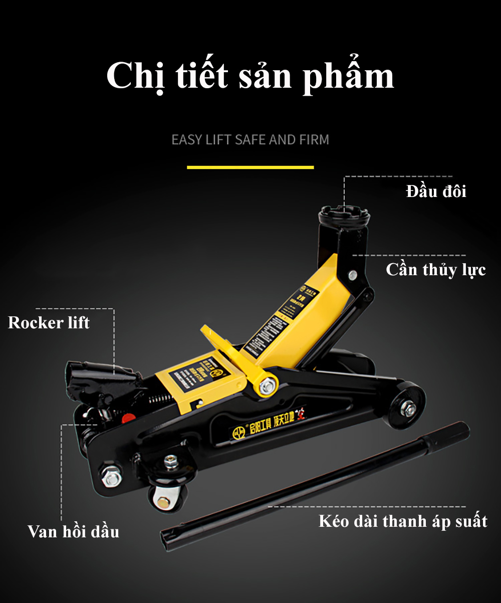 Kích Cá Sấu ABG 2 Tấn Chiều Cao Tối Thiểu 130mm Chiều Cao Tối Đa 330mm Con Đội Cá Sấu 2 Tấn Kích Thủy Lực Dùng Để Nâng Các Vật Nặng, Kích gầm Ô Tô - Hàng Chính Hãng. GIỚI THIỆU SẢN PHẨM : Kích cá sấu hay kích thủy lực là thiết bị dùng để nâng các vật nặng có trọng tải lớn, cồng kềnh lên đến hàng tấn, hoặc có thể lên đến vài tấn, vì thế mà sản phẩm này được sử dụng nhiều và không thể thiếu trong các tiệm sửa chữa garage ô tô hay sản xuất, sửa chữa máy móc công nghiệp. Đây là một loại thiết bị hỗ trợ cho người thợ rất nhiều khi nâng những chi tiết mà sức người không thể nâng lên được.