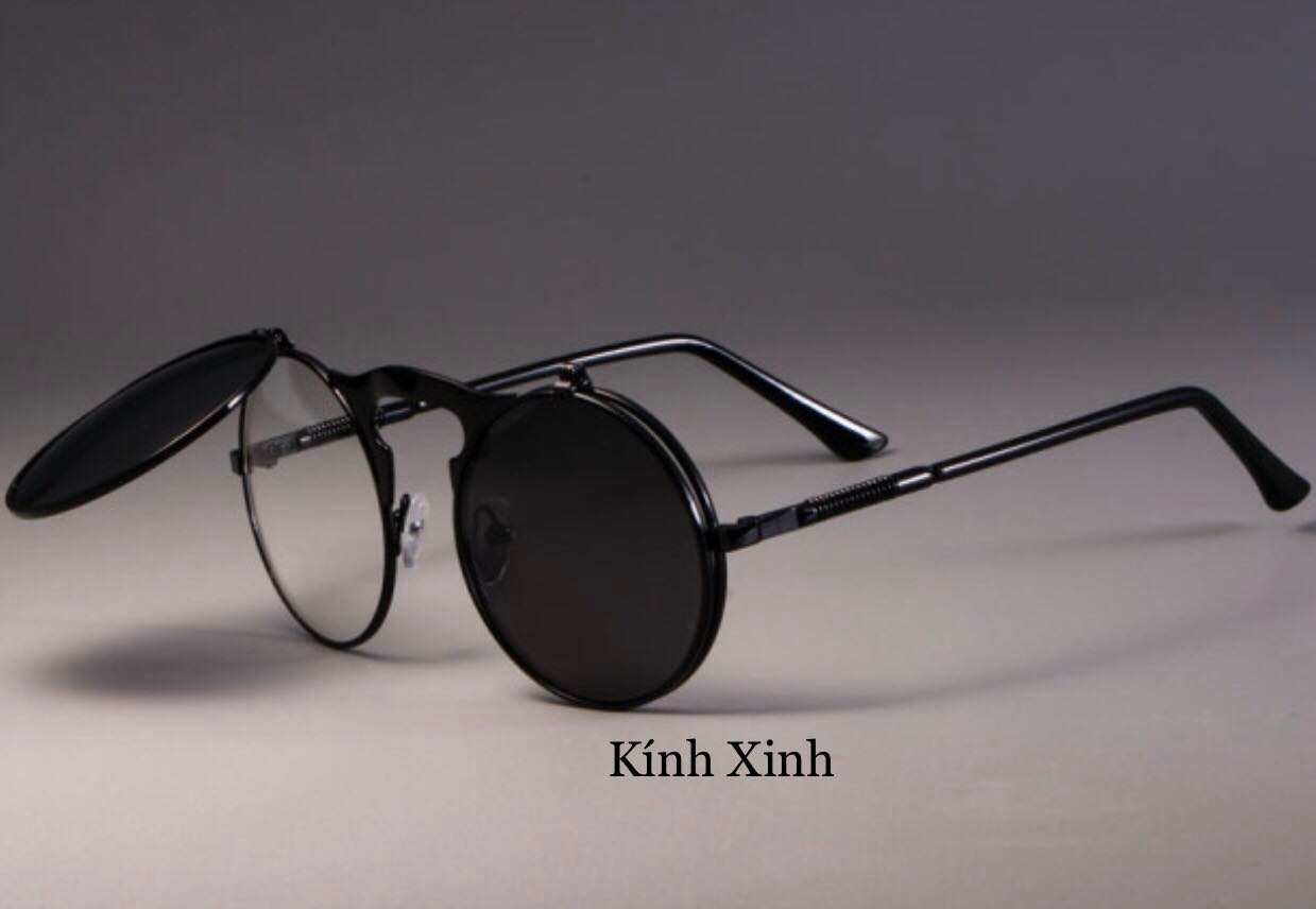 - Kính râm Mắt Tròn Nhỏ 2 Lớp Lật Nắp Gọng Lò Xo Cao Cấp