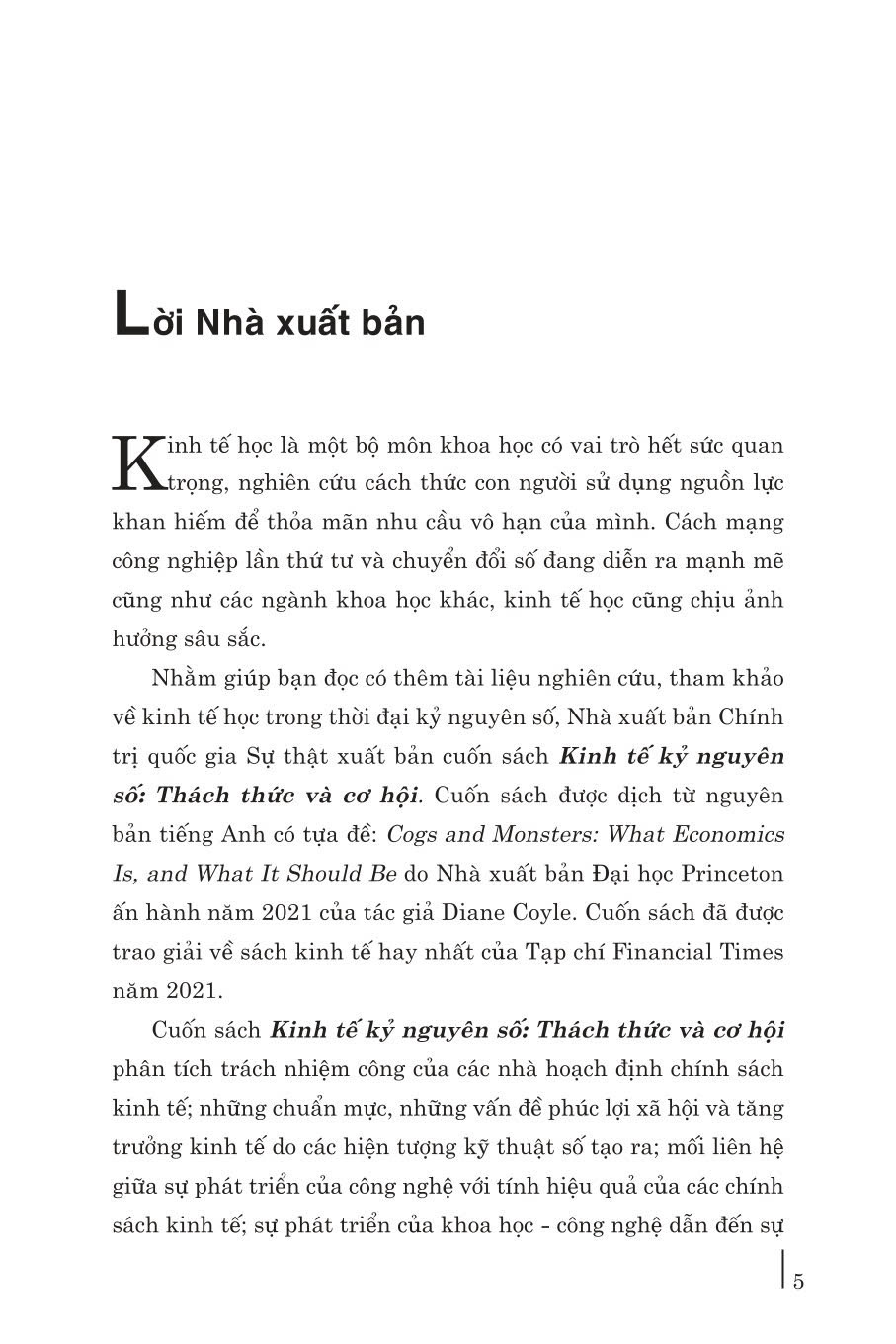 Cuốn sách được dịch từ nguyên bản tiếng Anh có tựa đề: Cogs and Monsters: What Economics Is, and What It Should Be do Nhà xuất bản Đại học Princeton ấn hành năm 2021 và đã được trao giải về sách kinh tế hay nhất của Tạp chí Financical Times năm 2021.