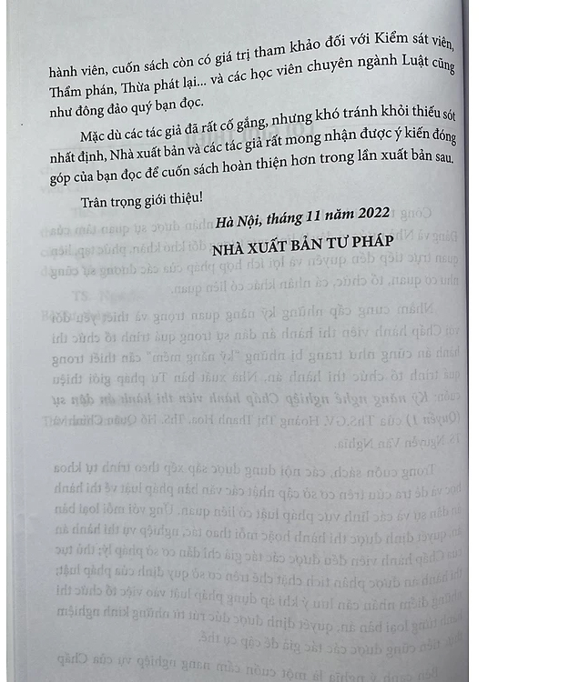 Kỹ năng nghề nghiệp Chấp hành viên thi hành án dân sự (Quyển 1) Tác giả: Ths. GV. Hoàng Thị Thanh Hoa - Ths. Hồ Quân Chính - TS. Nguyễn Văn Nghĩa Nhà xuất bản: Tư Pháp Năm phát hành: 12.2022 Khổ sách: 16*24cm Số trang: 600 Giới thiệu tóm tắt tác phẩm: Nhà Xuất bản Tư pháp và Nhóm tác giả: Ths. GV.Hoàng Thị Thanh Hoa, Ths. Hồ Quân Chính, TS. Nguyễn Văn Nghĩa xin trân trọng giới thiệu tới Quý bạn đọc cuốn sách mới “Kỹ năng nghề nghiệp Chấp hành viên Thi hành án Dân sự” Đây là cuốn sách chứa đựng những kỹ năng quan trọng và thiết yếu có giá trị tham khảo và ứng dụng cao đối với Chấp hành viên Thi hành án Dân sự trong quá trình tổ chức thi hành án. Cuốn sách dày 600 trang, kết cấu được xây dựng bám theo thủ tục THADS trên cơ sở cập nhật tất cả các văn bản pháp luật về THADS và các lĩnh vực pháp luật khác có liên quan được áp dụng đối với từng thủ tục một cách chi tiết giúp người đọc dễ dàng tra cứu. Những giá trị quý báu mà cuốn sách mang đến cho bạn đọc: ứng với mỗi tác nghiệp của Chấp hành viên đều được chỉ rõ cơ sở pháp lý; thủ tục thi hành án được phân tích chặt chẽ trên cơ sở quy định của pháp luật; cùng với những điểm nhấn cần lưu ý khi áp dụng pháp luật và những kinh nghiệm thực tiễn vào việc tổ chức thi hành án; trang bị những “kỹ năng mềm” cần thiết trong quá trình tổ chức thi hành án. Bên cạnh ý nghĩa là một cuốn sách “kỹ năng nghề” của Chấp hành viên, cuốn sách còn có giá trị tham khảo đối với những người làm công việc chuyên ngành Tư pháp như Kiểm sát viên, Thẩm phán, Thừa phát lại… và các học viên chuyên ngành Luật cũng như đông đảo Quý độc giả. Nhóm tác giả hy vọng cuốn sách “Kỹ năng nghề nghiệp Chấp hành viên thi hành án dân sự” sẽ là người bạn đồng hành tin cậy đối với đồng nghiệp công tác trong hệ thống Thi hành án dân sự và đông đảo Quý bạn đọc quan tâm! Giá sách là 260.000 đồng/cuốn.