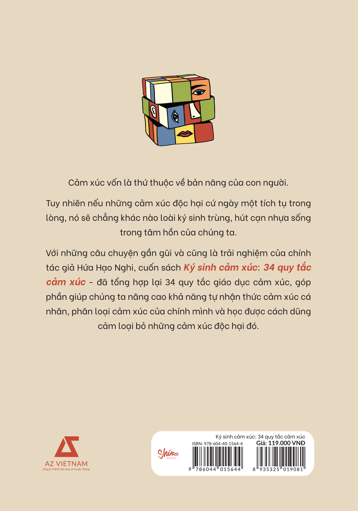 Với những câu chuyện gần gũi và cũng là trải nghiệm của chính tác giả Hứa Hạo Nghi, cuốn sách Ký sinh cảm xúc: 34 quy tắc cảm xúc - đã tổng hợp lại 34 quy tắc giáo dục cảm xúc, góp phần giúp chúng ta nâng cao khả năng tự nhận thức cảm xúc cá nhân, phân loại cảm xúc của chính m.ình và học được cách dũng cảm loại bỏ những cảm xúc độc hại đó.