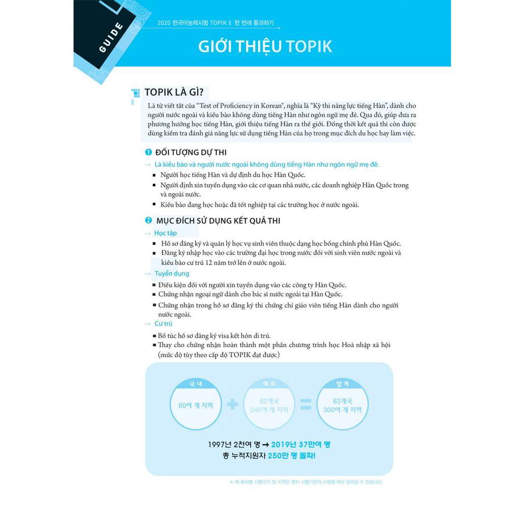 CẨM NANG LUYỆN THI NĂNG LỰC TIẾNG HÀN - TOPIK II TOPIK là kỳ thi năng lực tiếng Hàn được tổ chức tại 76 quốc gia và có đến 375.871 thí sinh khắp thế giới