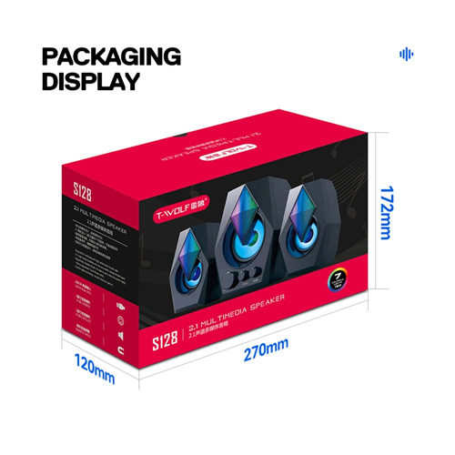 Loa T-Wolf S128 là một bộ loa 2.1 với một loa siêu trầm 5W và hai loa vệ tinh 3Wx2. Bộ loa này còn được trang bị tính năng đèn LED tạo hiệu ứng ánh sáng độc đáo, mang lại một không gian nghe nhạc thú vị.