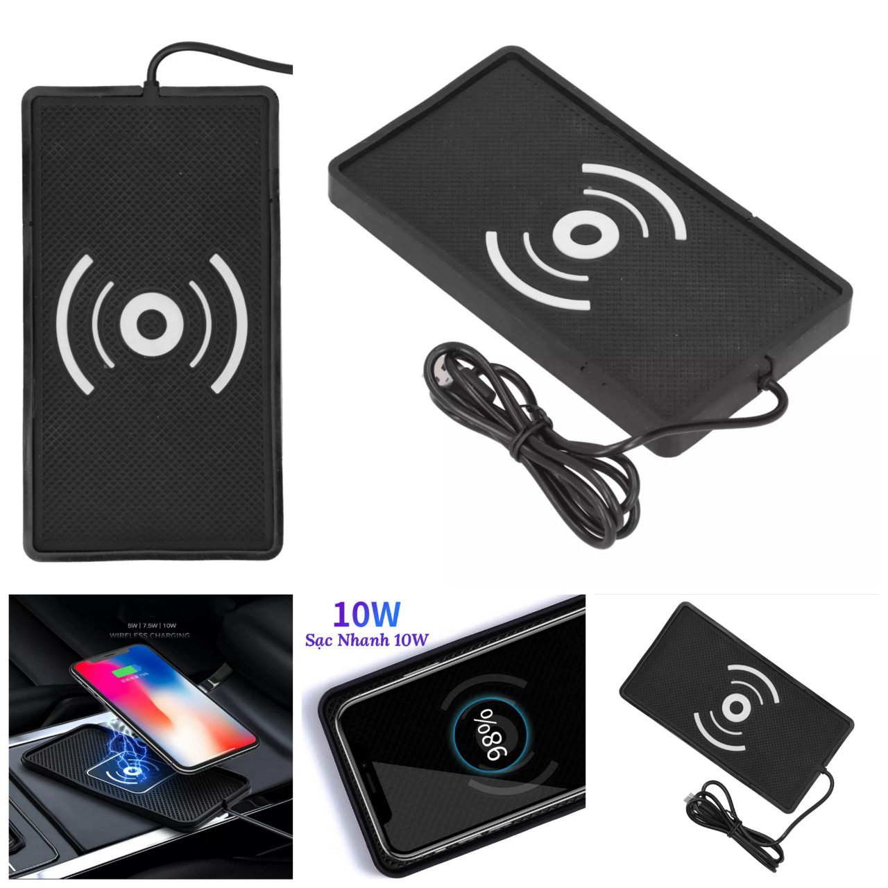 ✨(LOẠI TỐT) Đế sạc nhanh không dây Qi 10W mẫu mới thông minh tự ngắt có đệm chống sốc dùng trong xe hơi văn phòng, đồ chơi ô tô