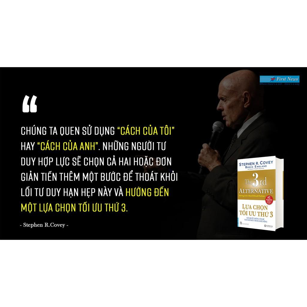 Nói cách khác, Stephen Richards Covey – tác giả cuốn sách đã nói rằng: Hầu hết các cuộc xung đột đều có sự tham gia của ít nhất hai phía. Phương thức thứ nhất chính là cách của tôi. Phương thức thứ hai là cách của anh. Bằng cách hợp lực, chúng ta có thể tạo ra Lựa chọn tối ưu thứ 3 – cách của chúng ta. Đây là cấp độ cao hơn và tốt hơn nhằm giải quyết các mâu thuẫn.