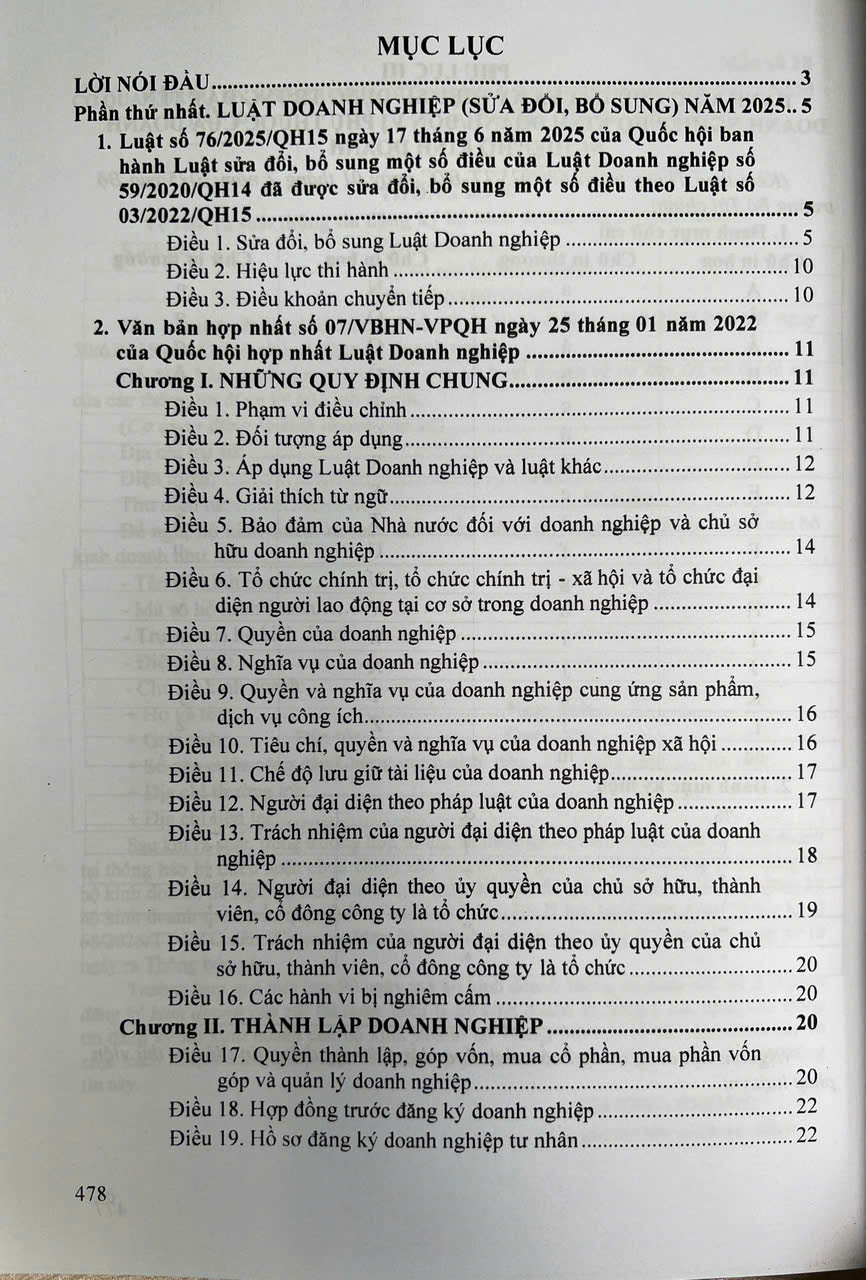 Ngày 17 tháng 6 năm 2025, tại Kỳ họp thứ 9, Quốc hội khóa XV thông qua Luật số 76/2025/QH15 của Quốc hội ban hành Luật sửa đổi, bổ sung một số điều của Luật Doanh nghiệp số 59/2020/QH14 đã được sửa đổi, bổ sung một số điều theo Luật số 03/2022/QH15 (sau đây gọi tắt là Luật Doanh nghiệp sửa đổi bổ sung 2025). Để áp dụng các quy định pháp luật trong Luật Doanh nghiệp vừa qua Chính phủ và Bộ ngành đã ban hành (Nghị định số 168/2025/NĐ-CP ngày 30 tháng 6 năm 2025 của Chính phủ ban hành Nghị định về đăng ký doanh nghiệp, Thông Tư Số 68/2025/TT-BTC ngày 01 tháng 07 năm 2025 của Bộ Tài chính ban hành biểu mẫu sử dụng trong đăng ký doanh nghiệp, đăng ký hộ kinh doanh…Nhằm góp phần công tác tuyên truyền các văn bản pháp luật mới trong Luật Doanh nghiệp và văn bản mới hướng dẫn thi hành Nhà xuất bản Hồng Đức cho xuất bản cuốn sách: