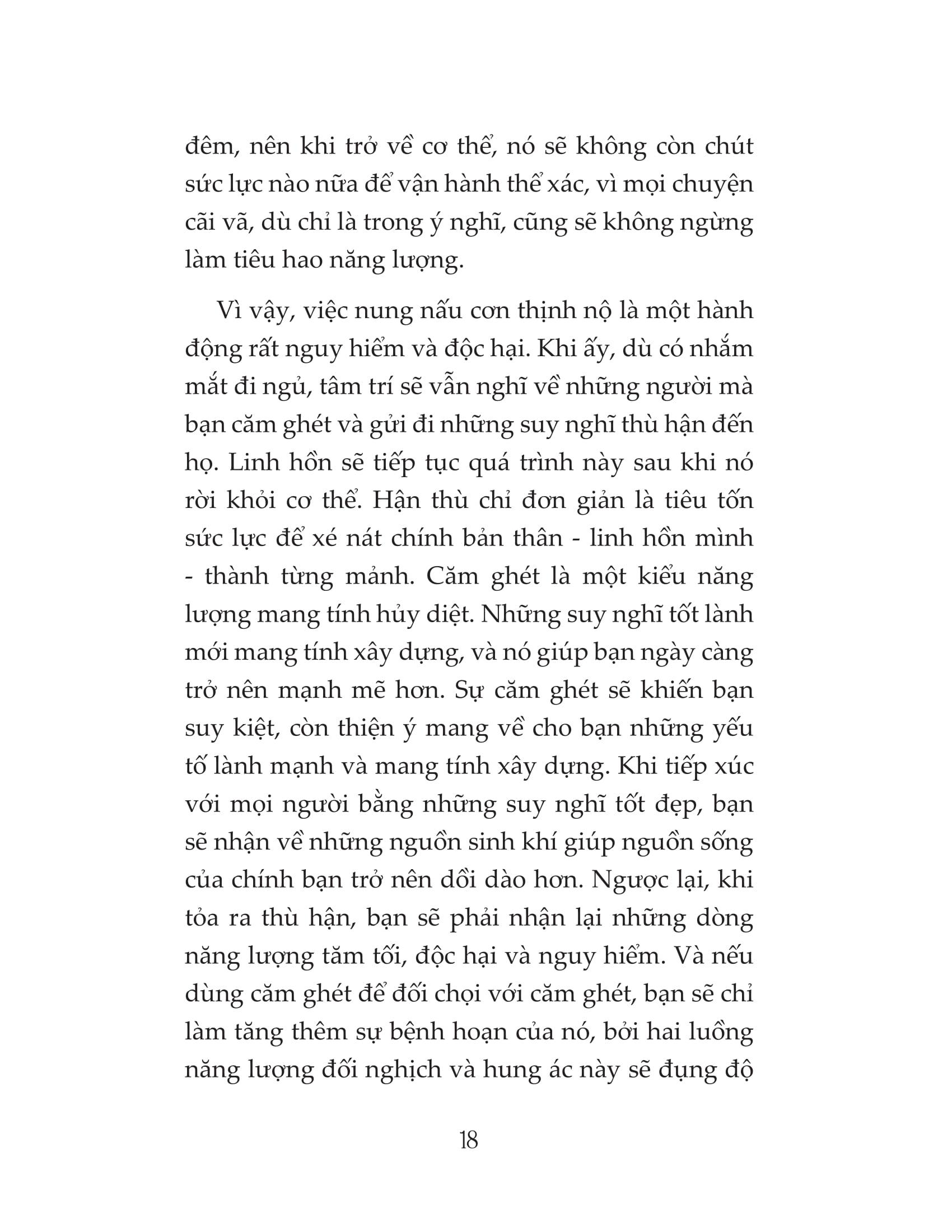 Cuốn sách này xoay quanh Luật Hấp dẫn, diễn giải những quy luật tâm thức đã luôn tồn tại và không ngừng hiện hữu trong mọi khía cạnh hoạt động của con người, giúp chúng ta thấu hiểu và bắt đầu học cách sử dụng nguồn năng lượng khổng lồ đang ẩn sâu trong cơ thể, để can đảm tiến bước trên hành trình dựng xây sự nghiệp và cuộc đời viên mãn mà ta mong muốn.