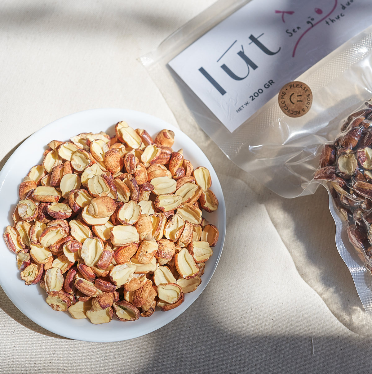 Lứt - Sen Gò Thực Dưỡng từ vùng nguyên liệu Sen Gò Phú Yên còn nguyên lớp vỏ lụa, đã tách tâm, màu nâu đậm và hương thơm nhẹ. Khi nấu chín có hạt mềm, bở, bùi và hương thơm dịu nhẹ.