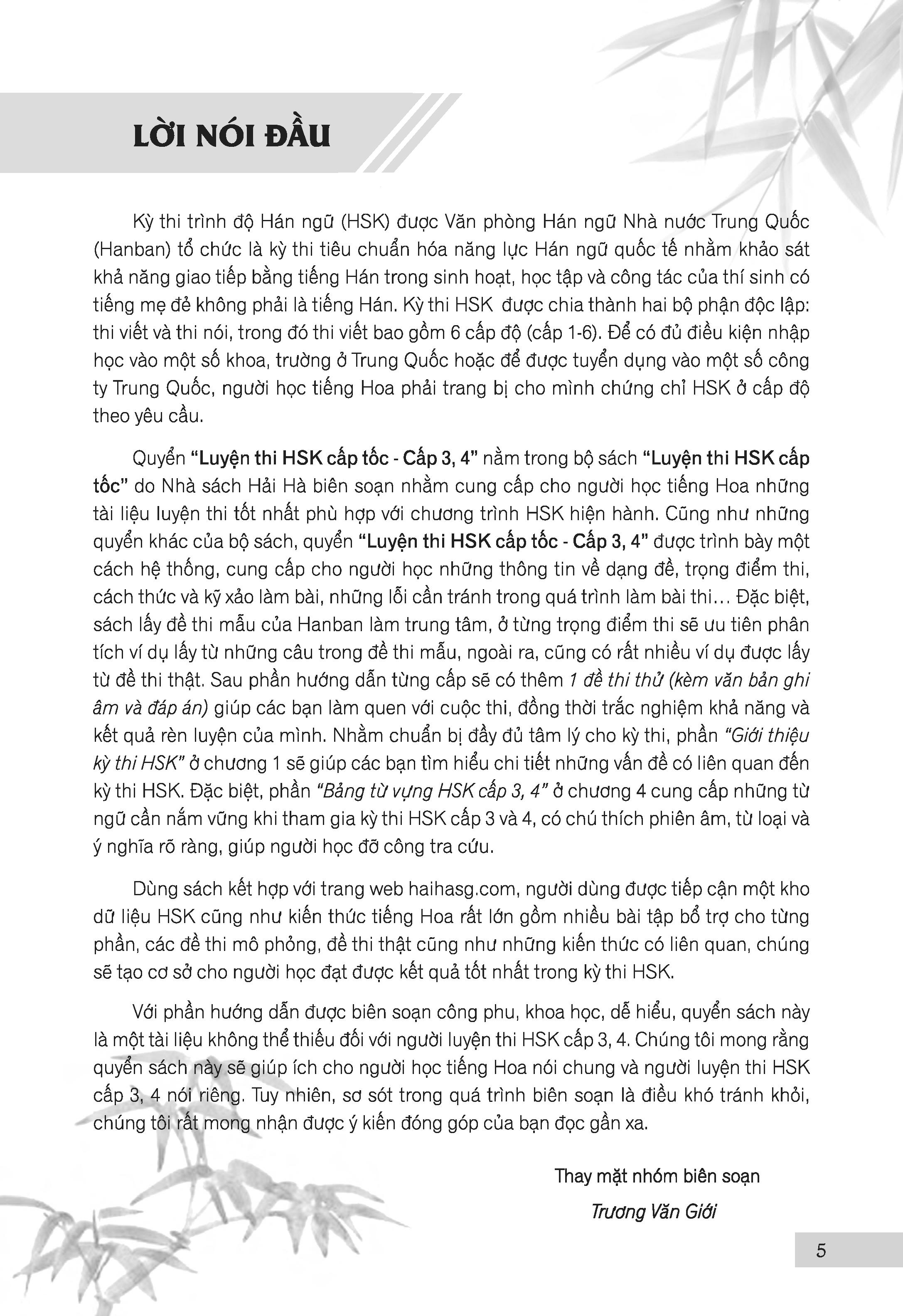 1. Luyện thi HSK cấp tốc cấp 3+4 Tác giả: Trương Văn GIới & Lê Khắc Kiều Lục Nhà xuất bản Đại Học Quốc Gia TPHCM Số trang: 424 Kích thước: 18.5cm x 26.5cm x