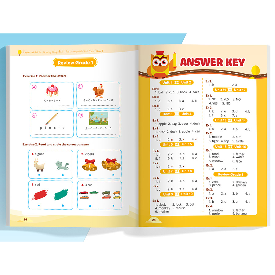 Kèm sau mỗi bài học là những hoạt động thực hành thú vị, các con vừa được ôn lại từ vựng hiệu quả, vừa được thoải mái thư giãn.