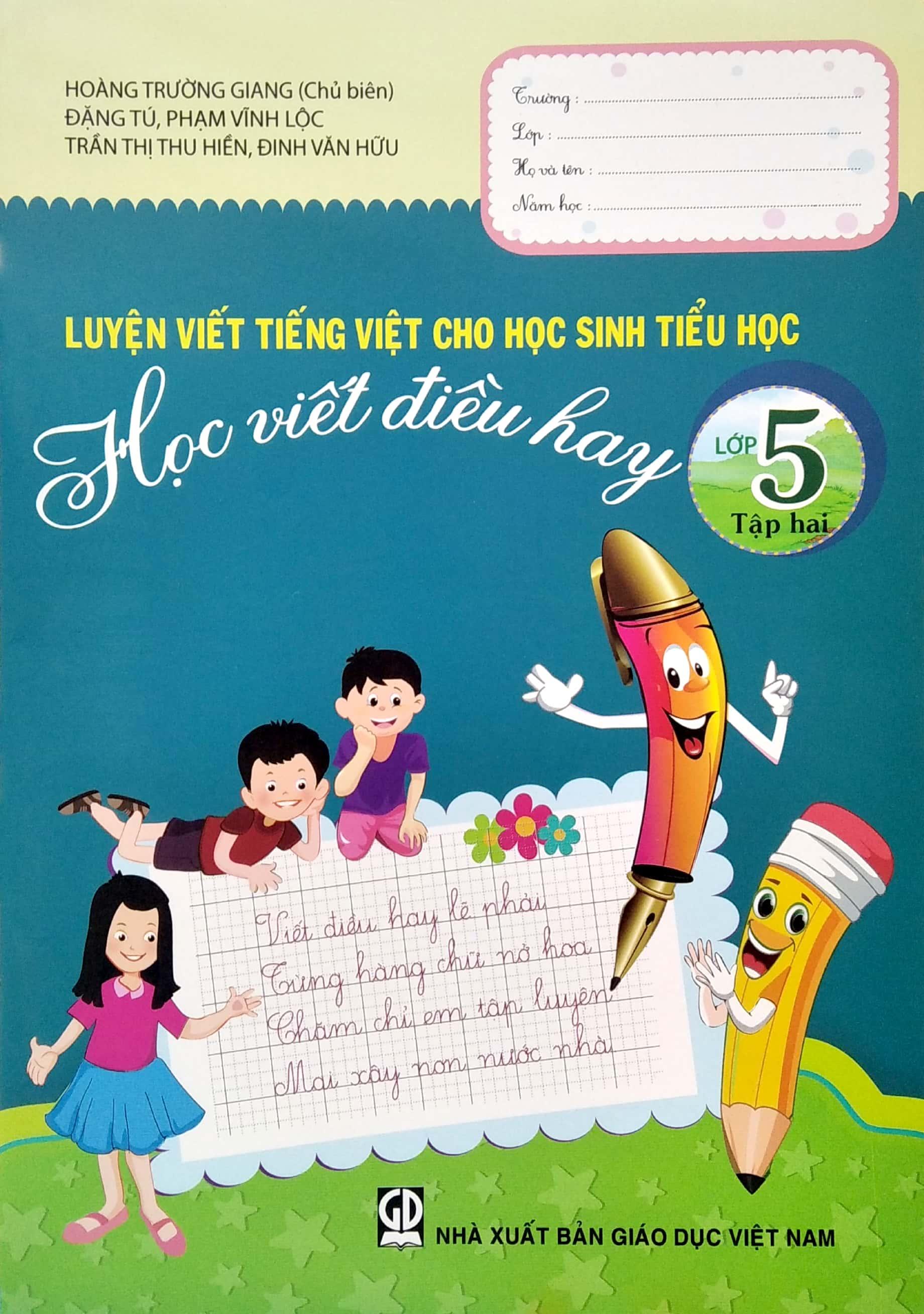 Để viết đúng và đẹp, ngoài việc tập viết trên lớp, các em cần phải luyện viết thêm ở nhà qua các tài liệu tập viết.Đáp ứng nhu cầu này, Nhà xuất bản Giáo dục Việt Nam ấn hành bộ vở Luyện viết tiếng Việt cho học sinh tiểu học (Vui cùng chữ viết – Học viết điều hay)gồm 10 cuốn (2 tập/1 lớp) dành cho học sinh từ lớp 1 đến lớp 5. Bộ vở do các chuyên viên và giáo viên có kinh nghiệm biên soạn theo chuẩn kiến thức kĩ năng các môn học ở tiểu học và định hướng phát triển năng lực của chương trình và sách giáo khoa mới.