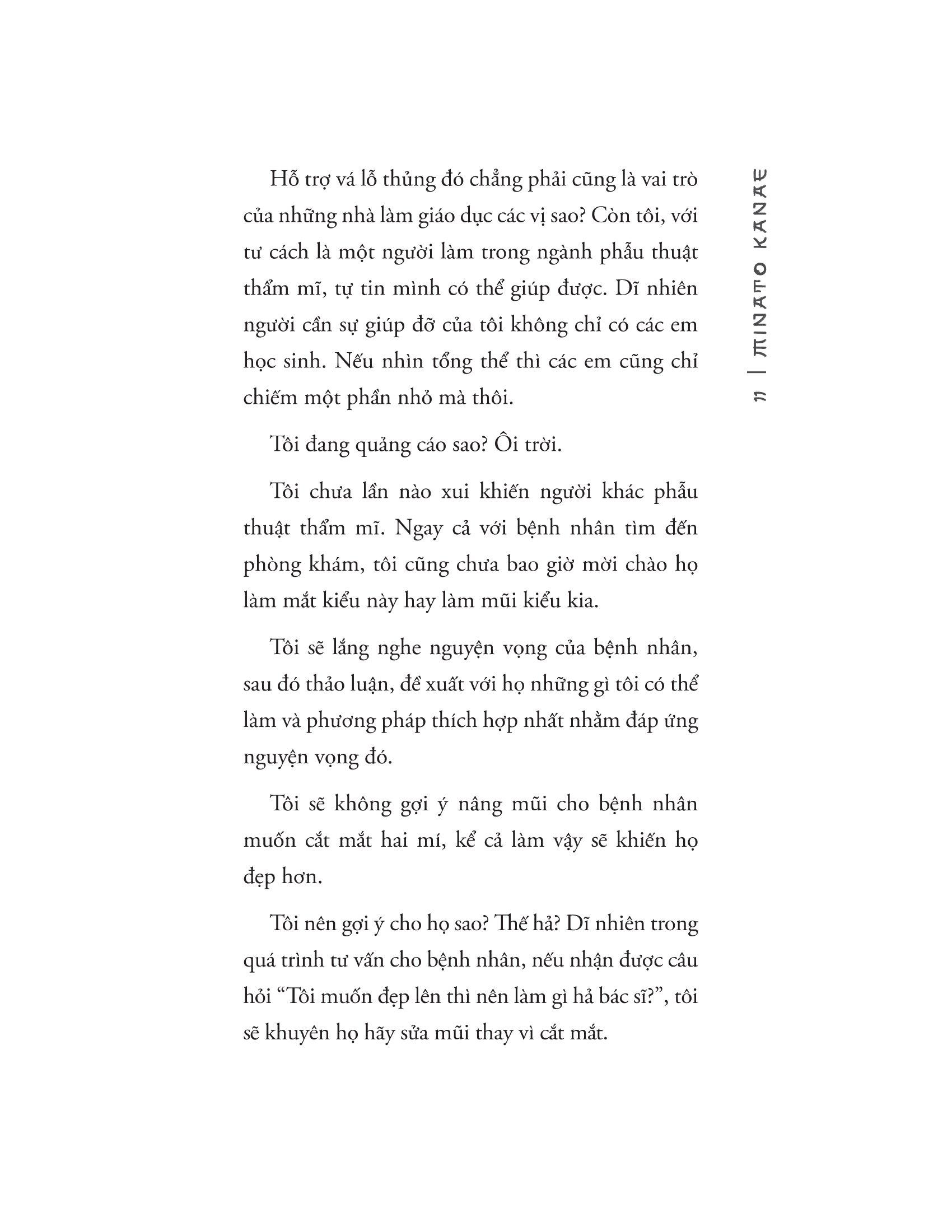 Mảnh Vỡ “Một cô bé nơi thị trấn vùng quê tự sát giữa biển bánh vòng. Họ bảo em là thiếu nữ đẹp như người mẫu. Nhưng tôi nghe nói em mập nhất trường…” Tachibana, một bác sĩ tại một bệnh viện thẩm mỹ, được người bạn thân cũ hồi đi học của cô ấy – người đang muốn giảm cân – ghé thăm để xin tư vấn. Trong buổi tư vấn đó, họ tình cờ chia sẻ cho nhau câu chuyện về một người bạn khác của họ ở trường tiểu học, Yokoami. Cô ấy có một cô con gái bỏ học giữa chừng và đã tự kết liễu cuộc đời ngắn ngủi của m.ình trong căn phòng vương vãi những chiếc bánh rán vòng rắc đường thơm ngọt… Tại sao cô bé đó lại có quyết định dại dột đến vậy? Liệu cô bé có đang bị mẹ m.ình ngược đãi, bị ép ăn quá nhiều bánh vòng đến béo không nhận ra? Hay điều ngược lại mới là sự thật, chính những chiếc bánh vòng lại là người bạn nâng đỡ những thương tổn và đưa cô bé đến chân trời hạnh phúc? Những mảnh vỡ tưởng chừng như rời rạc được góp nhặt từ những câu chuyện quá khứ và hiện tại chồng chéo nhưng khớp nhau đến ngạc nhiên, đã vẽ lên bức tranh tổng thể về đời sống xã hội Nhật Bản, nơi chủ nghĩa ngoại hình được tôn vinh và con người quên đi những giá trị thực, lòng trắc ẩn cũng như hạnh phúc giản đơn. Suy cho cùng, vẻ đẹp ngoại hình không bất biến cả đời. Có những thứ sẽ dần hao tổn như làn da đàn hồi hay mái đầu óng ả, và cũng có những thứ sẽ thừa ra như bụng và eo, lưng và bắp tay, hết chỗ này đến chỗ nọ. Hãy cứ thoải mái với những gì m.ình có, đừng để người khác đặt ra tiêu chuẩn cho bản thân m.ình. Về tác giả: Minato Kanae (sinh năm 1973) là nữ tác giả chuyên về tiểu thuyết tâm lý nổi tiếng của Nhật. Bước vào nghiệp viết khá muộn (khi đã sang tuổi 30), nhưng nhờ tài năng viết lách và những góc nhìn đa chiều về cuộc sống, bà đã mang đến cho chúng ta những tác phẩm xuất sắc, cũng như giành được nhiều thành tựu đáng chú ý. Bà cũng là fan của các tác giả trinh thám kỳ cựu khác như Leblanc, Agatha Christie của phương Tây, hay Edogawa Ranpo, Miyuki Miyabe và cả Higashino Keigo của Nhật Bản. Một số trích dẫn hay trong sách: