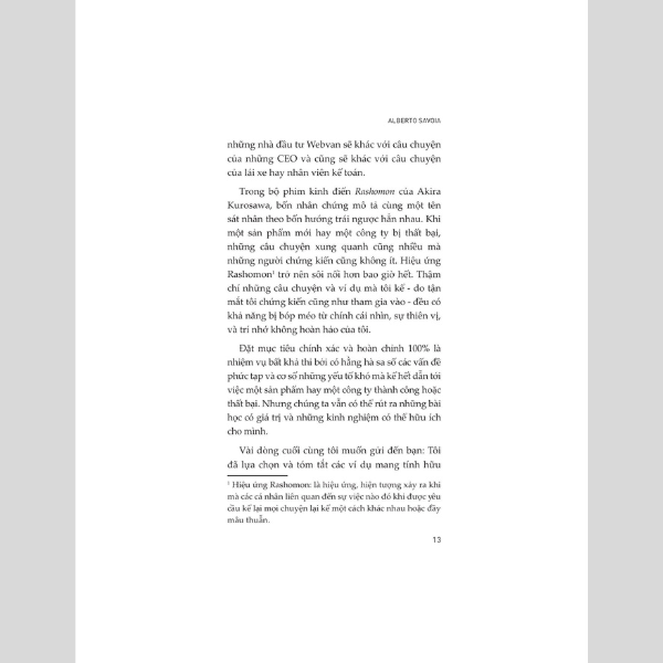 Alberto Savoia là một doanh nhân thành đạt, nhà đầu tư thiên thần, đồng thời là chuyên gia và người thực hành trong lĩnh vực tạo mẫu và đổi mới tinh gọn. Ông ấy có trụ sở tại Thung lũng Silicon. Ông giảng dạy cách tiếp cận đổi mới hiệu quả, độc đáo của mình tại Google, Stanford cũng như giảng dạy và huấn luyện nhiều công ty và công ty khởi nghiệp trong danh sách Fortune 500.