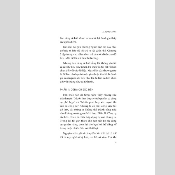 Tuy nhiên bằng kinh nghiệm của mình tại Google, với các thành tựu xuất sắc trên cương vi một doanh nhân và nhà tư vấn, cũng như là nhà diễn thuyết uy tín tại Đại học Stanford và Google, tác giả Alberto Savoia đã viết cuốn “Marketing thực chiến & Truyền thông bất bại” để “bày cách” giúp chúng ta hạ gục con Quái Vật Thất Bại.