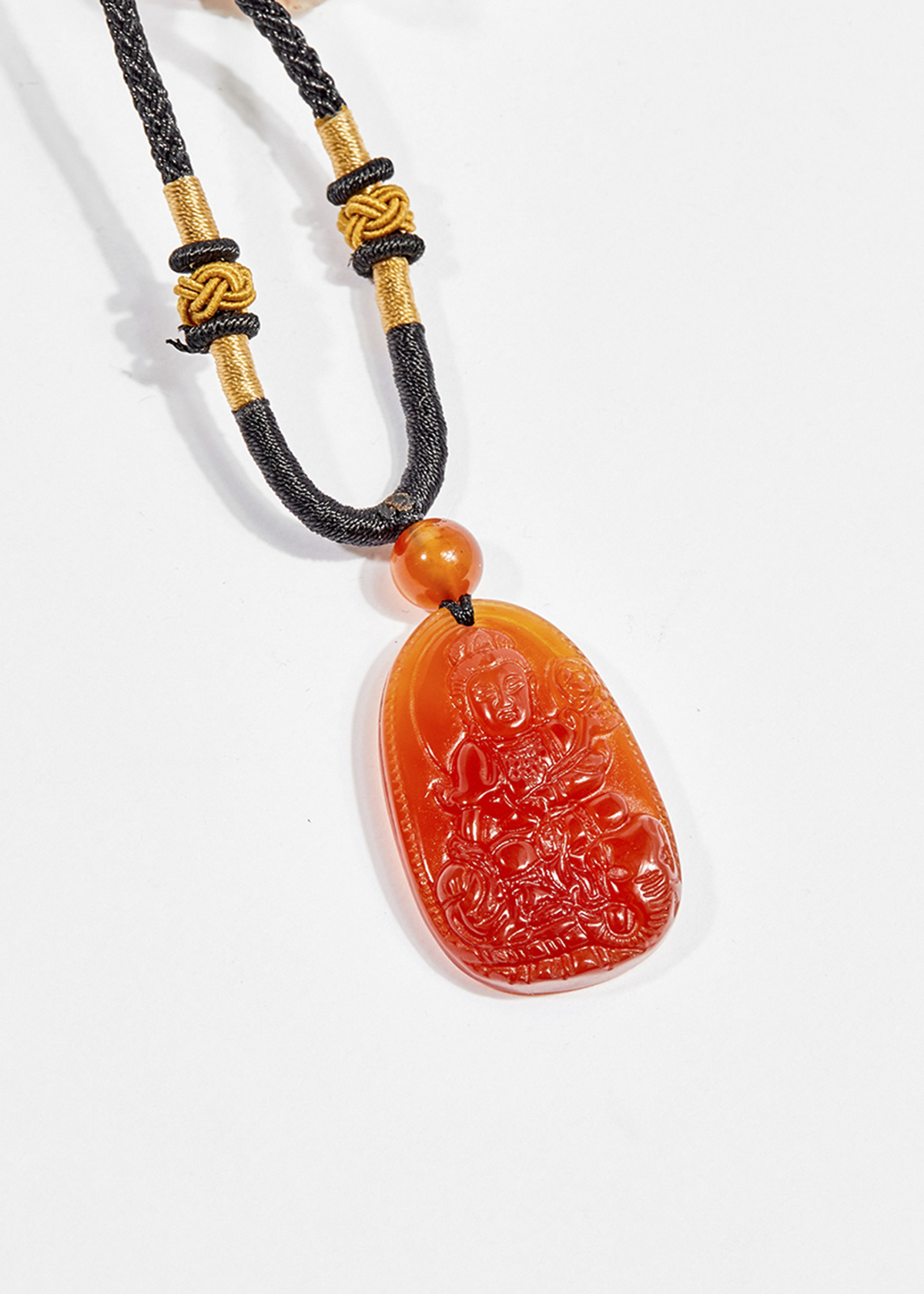 Mặt dây chuyền Phật Di Lặc đá Mã Não Đỏ sở hữu vẻ đẹp rực rỡ đầy mê hoặc, như những ngọn lửa nóng bỏng lan tỏa khắp dòng sông Agate, là biểu tượng của sự đam mê, nồng cháy và lòng nhiệt huyết, đem lại may mắn và binh an cho chủ sở hữu.