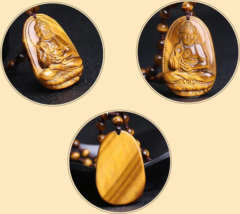 Mặt dây chuyền phật bản mệnh đá mắt hổ vàng nâu - Hợp mệnh thổ, mệnh kim | Ngọc Quý Gemstones |