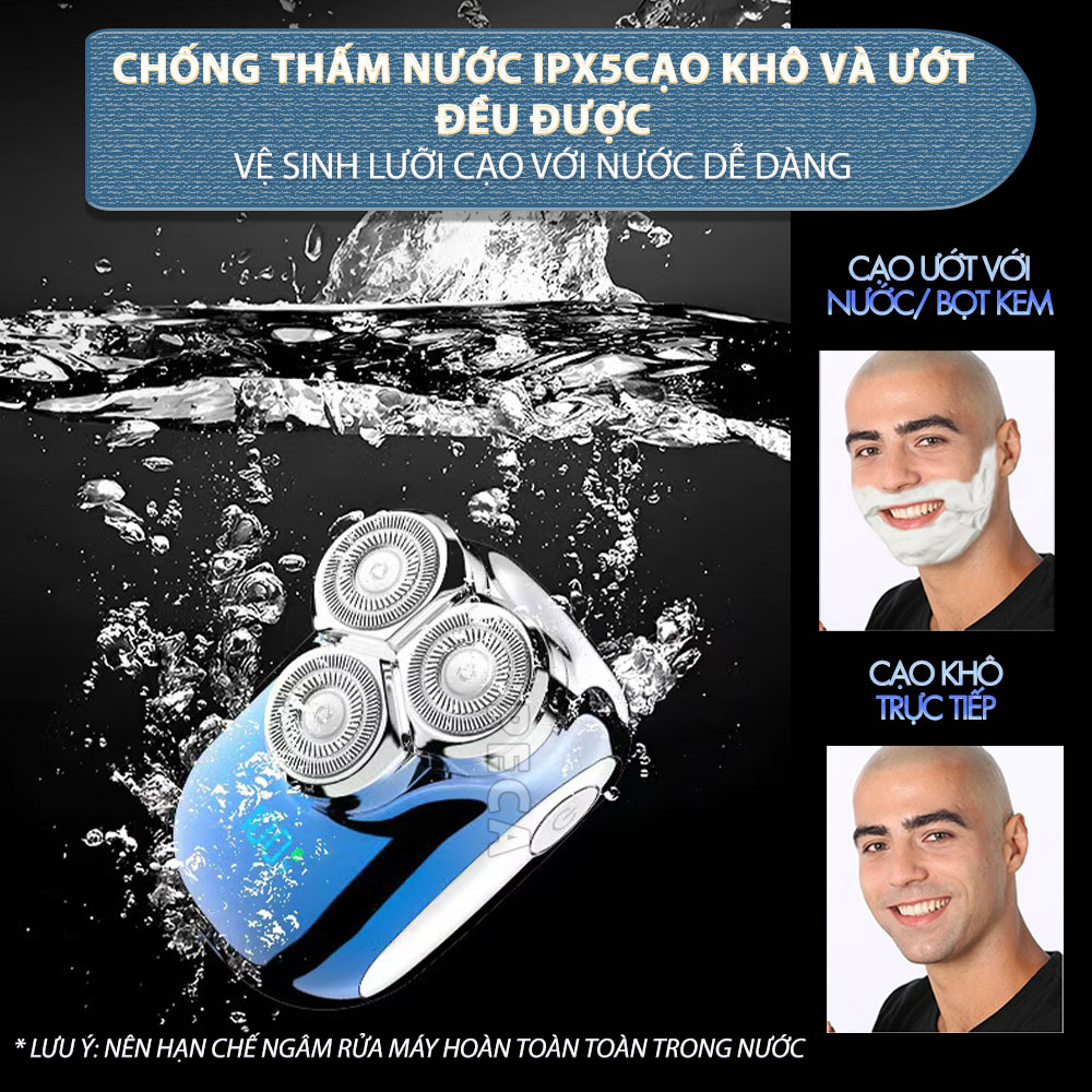Cạo Ướt: Máy cũng hỗ trợ cạo ướt khi sử dụng cùng bọt cạo râu hoặc gel. Tính năng này đặc biệt hữu ích cho những người có làn da nhạy cảm, giúp giảm thiểu kích ứng và mang lại cảm giác thoải mái.