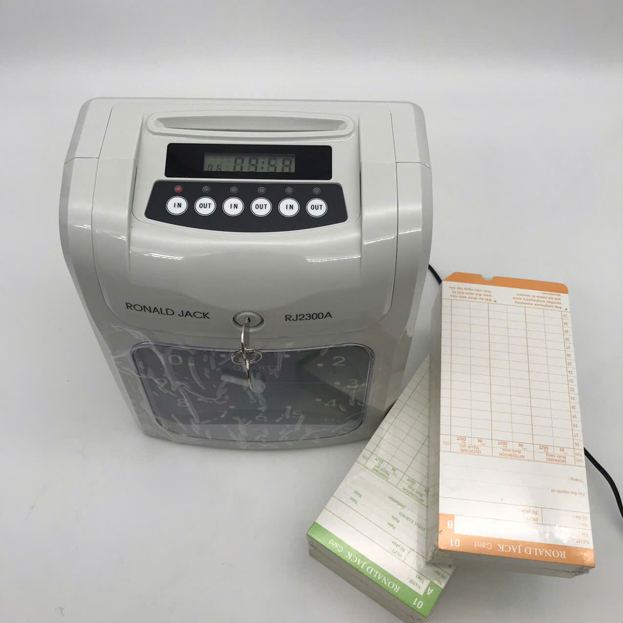 MÁY CHẤM CÔNG THẺ GIẤY RONALD JACK RJ2300 MÁY CHẤM CÔNG THẺ GIẤY 3 CA LÀM VIỆC TẶNG 100 THẺ GIẤY CHẤM CÔNG Kiểu đồng hồ hiển thị : Đồng hồ KIM - Màu sắc