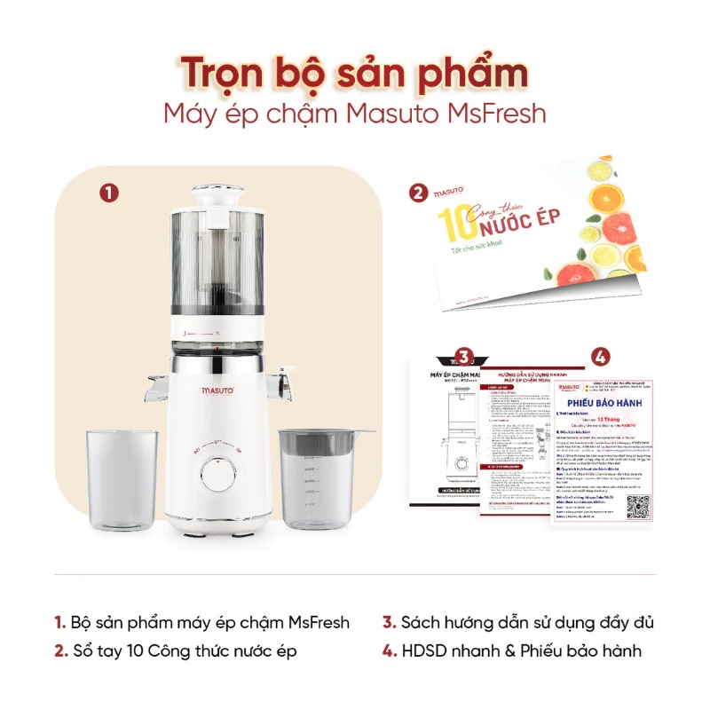 Máy ép chậm Masuto MSFresh là dòng máy ép công nghệ cao được nghiên cứu và phát triển bởi CEO cùng đội ngũ phát triển thương hiệu Masuto . Bằng việc ứng dụng công nghệ hiện đại, MSFresh giúp bạn dễ dàng tạo ra những món nước ép dinh dưỡng hoàn hảo bảo vệ sức khỏe và nâng cao sức đề kháng cho cả gia đình.