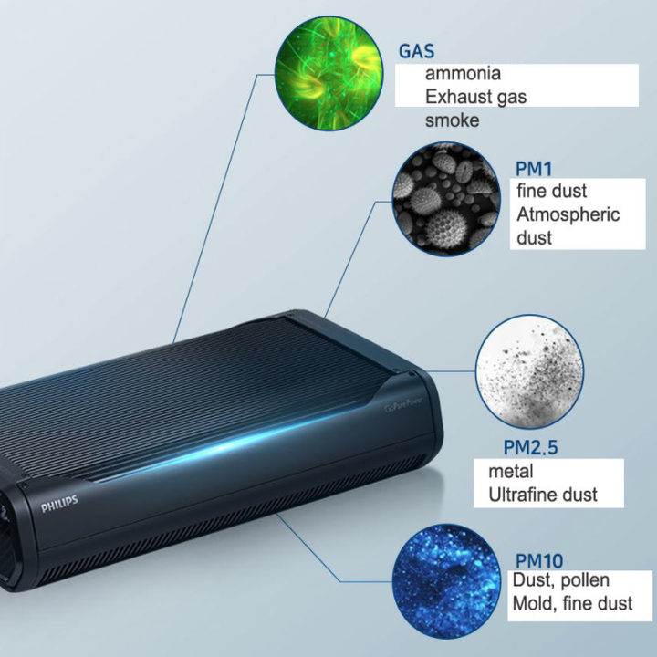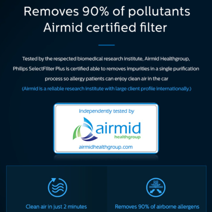 - Sử dụng công nghệ Airmax đời mới nhất của Philips, lọc 3 giai đoạn mạnh mẽ: Bộ lọc không khí xeon GoPure của Philips có hệ thống lọc không khí nhanh và hiệu quả. SelectFilter Plus 3 giai đoạn độc đáo loại bỏ tới 125 chất gây ô nhiễm có hại và khí thải, thông qua các lớp HEPA và HESA. Được chứng nhận độc lập bởi Airmid Healthgroup, công nghệ SelectFilter Plus cũng loại bỏ tới 90% các chất gây dị ứng phấn hoa trong không khí.