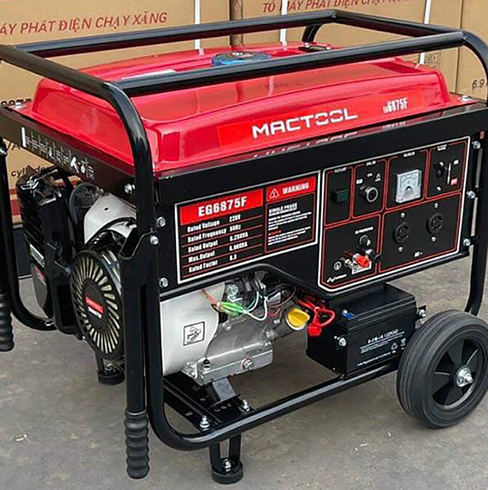 Thông tin hữu ích về máy phát điện Mactool EG6875F: Công suất định mức: 6.5 kW (8.1 kVA) Công suất tối đa: 7.0 kW (8.8 kVA) Điện áp định mức: 220 V Dòng điện định