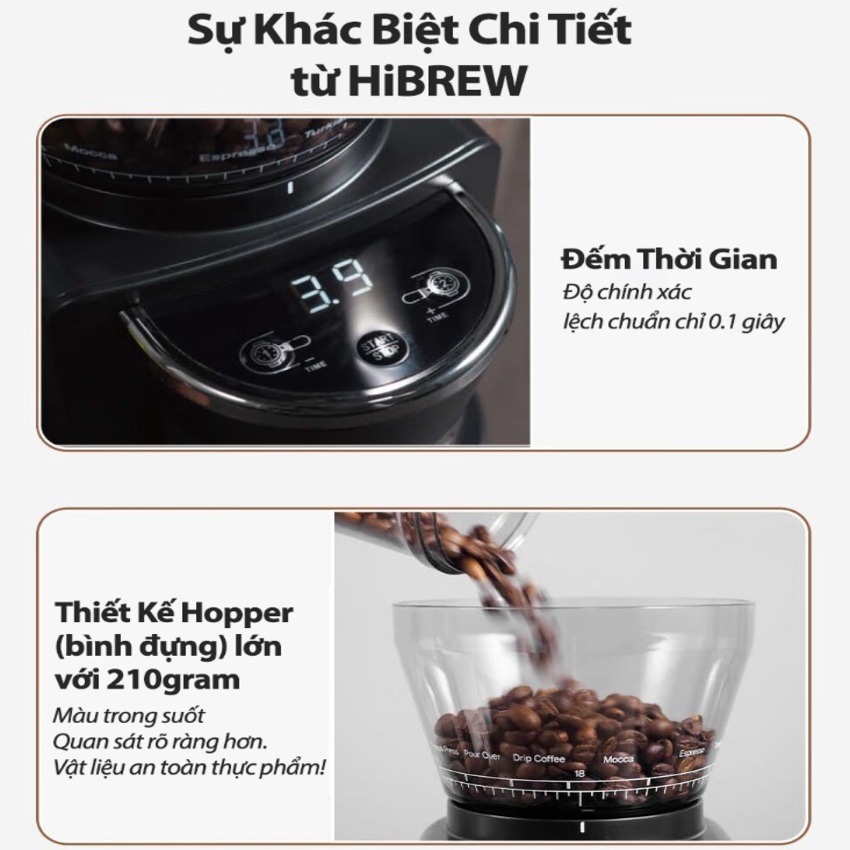 Máy xay hạt cà phê chuyên nghiệp Single Dose, tích hợp 36 chế độ xay - Thương hiệu Mỹ cao cấp HiBREW-G5 Hiện nay, cà phê là thức uống không thể thiếu của nhiều