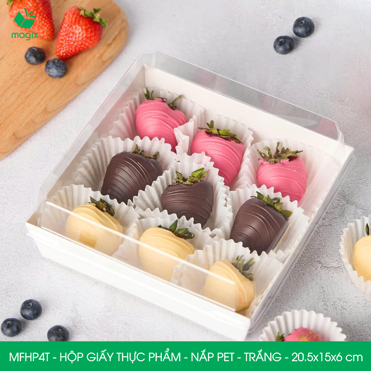 • MFHP4T - Hộp giấy thực phẩm nắp Pet - Trắng - 20.5x15x6 cm