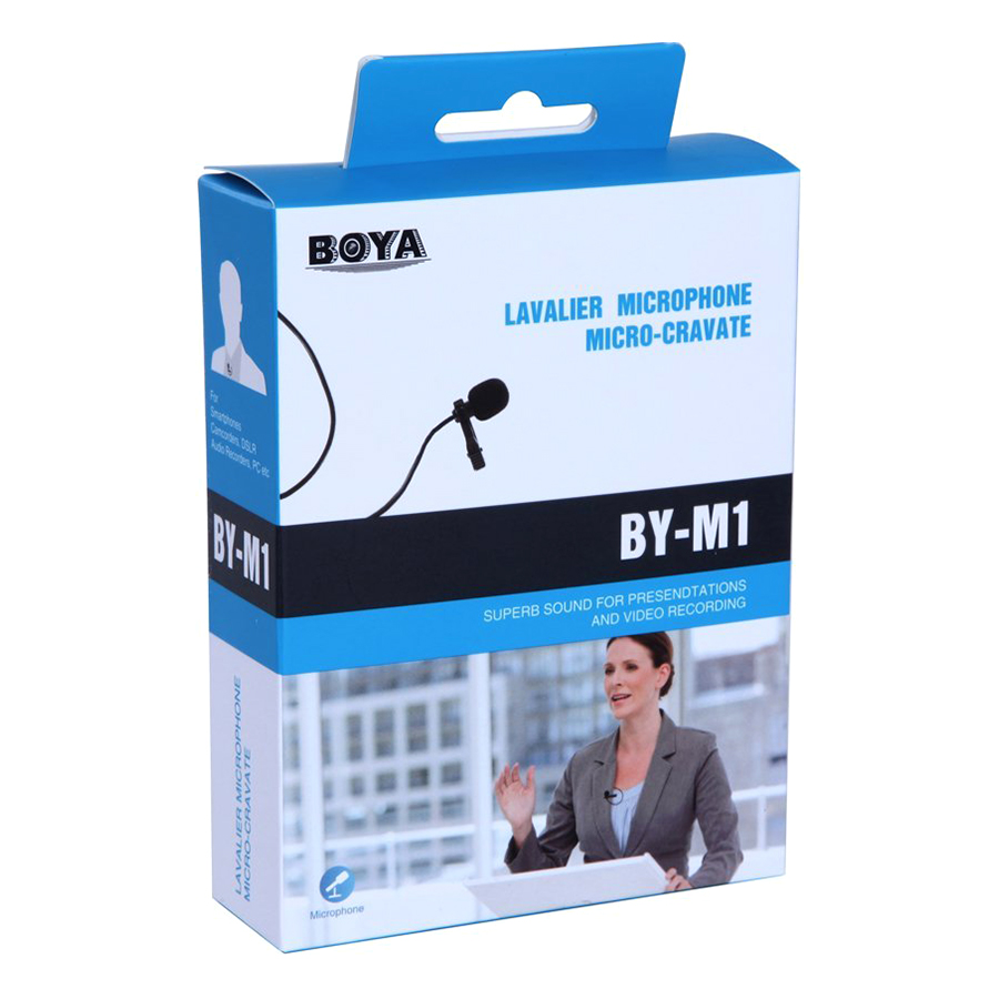 - Micro Lavalier cài áo Boya BY-M1 là một micro lavarier hướng Omni, được thiết kế cho điện thoại thông minh, máy ảnh DSLR, máy quay video, máy ghi âm PC vv, nó là hoàn hảo cho việc sử dụng video.