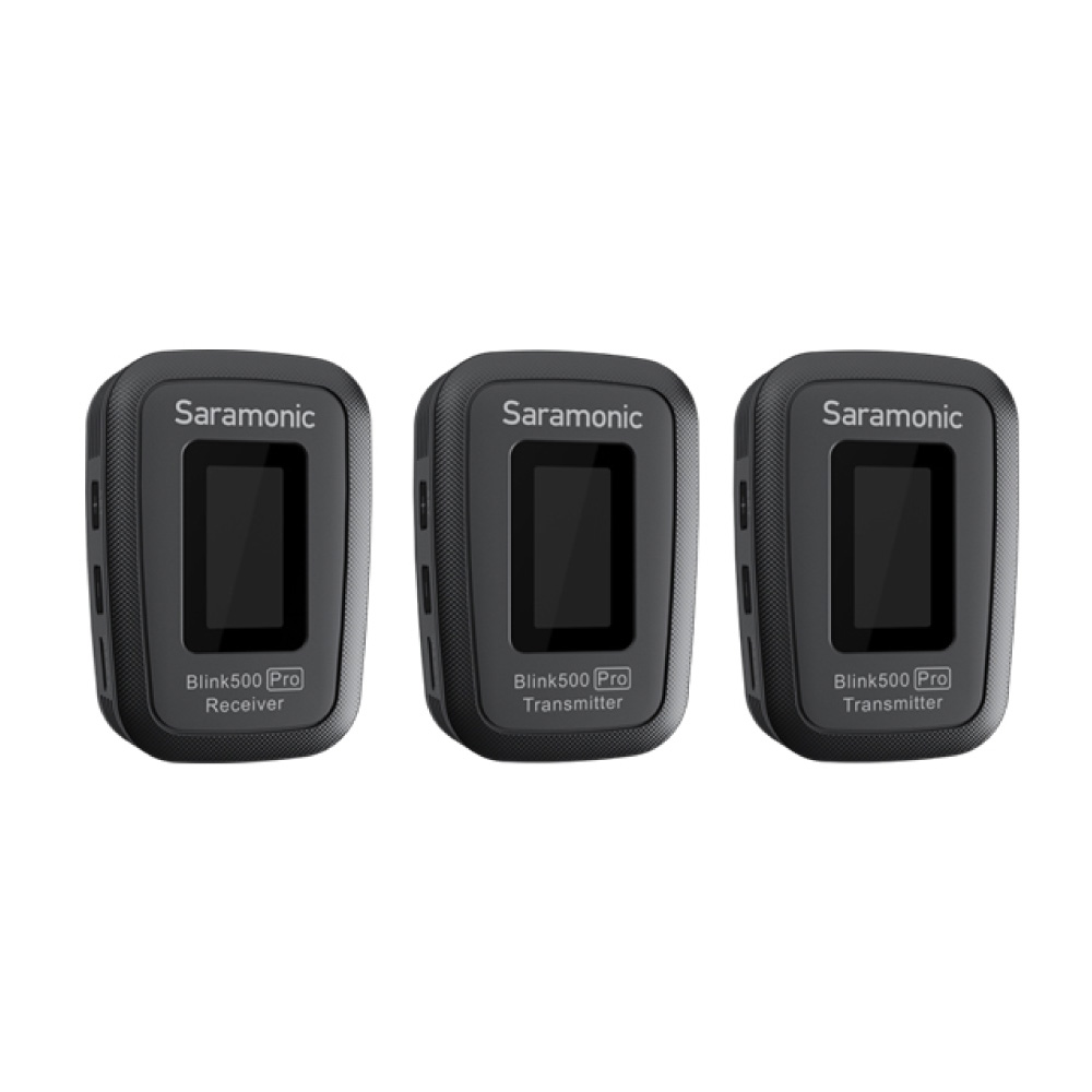 Saramonic Blink500 Pro B2 Saramonic Blink 500 Pro B2(TX+TX+RX) là bộ Microphone không dây tiện dụng, nhẹ, nhỏ gọn, dùng cho máy ảnh DSLR, Mirrorless và máy quay phim, hoặc các thiết bị di động, mang