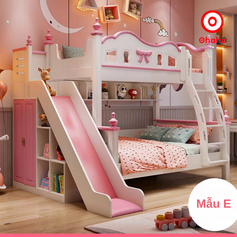 Giường tầng thông minh cao cấp Ohaha 3 tầng có cầu trượt - GTCC032 là mẫu giường tầng cao cấp được rất nhiều khách hàng yêu thích bởi thiết kế mang phong cách ngọt ngào tích hợp cùng nhiều tính năng thông minh như hộc cầu thang, giường phụ, cầu trượt, tủ áo,