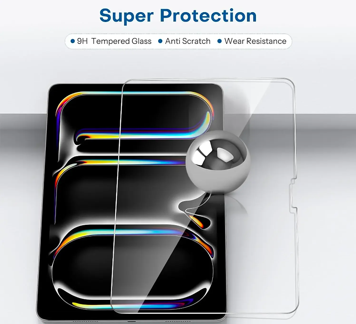 Miếng dán màn hình kính cường lực cho iPad Pro 13 inch M4 2024/ iPad Pro 11 inch M4 2024 hiệu Pro Glass (mỏng 0.2 mm, vát cạnh 2.5D, chống trầy, chống va đập