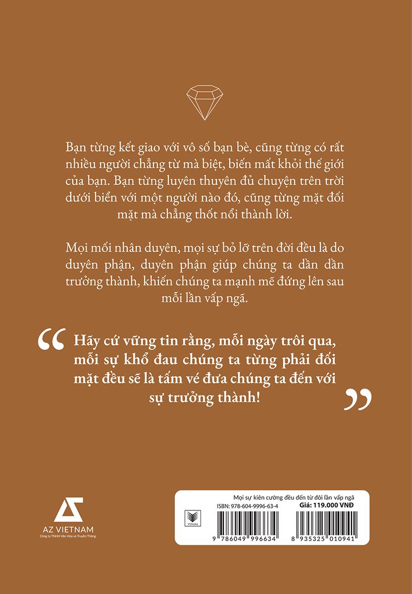 Mong sao cho mọi khó khăn trên chặng đường đời rồi sẽ đưa ta đên một mảnh đất đầy hoa nở ngọt ngào, sự trưởng thành khi kiên cường vượt qua hết thảy sẽ khiến bạn hạnh phúc và mãn nguyện với kết quả cuối cùng. Mong cuốn sách “Mọi sự kiên cường đều đến từ đôi lần vấp ngã” có thể gặp gỡ và đồng hành bên bạn trên đường đời.