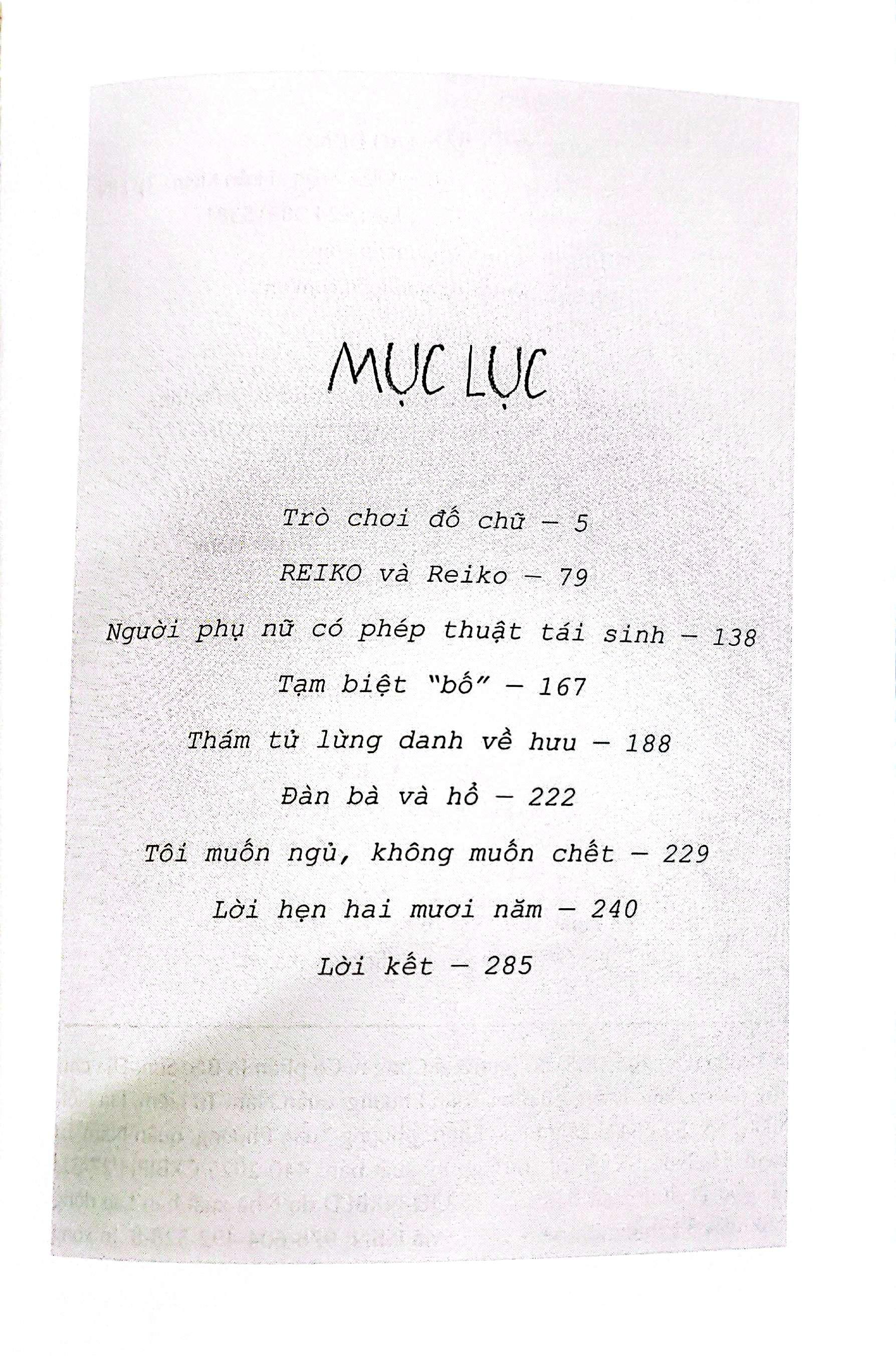Đây là câu chuyện mà Keigo Higashino đã dùng rất nhiều thủ pháp khác nhau để viết về một ai đó - có thể chính là bạn. Tuyển tập này có tám tác phẩm, bao gồm cả Tạm biệt “bố”- nguyên tác của tác phẩm nổi tiếng Bí mật của Naoko.
