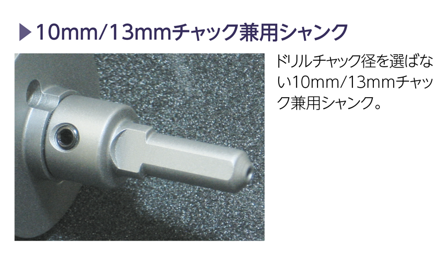 MẪU BỘ KHỚP NỐI KHÔNG CẦN CHỌN CHUÔI [BỘ KHỚP NỐI ĐÃ GẮN CHUÔI 10MM/13MM] Tốc độ quay thích hợp: Hãy sử dụng tốc độ quay thích hợp với vật liệu để khoan. Trường hợp khoan lỗ trên tấm thép dày hơn 5mm và liên tục, nên chọn tốc độ quay chậm hơn.