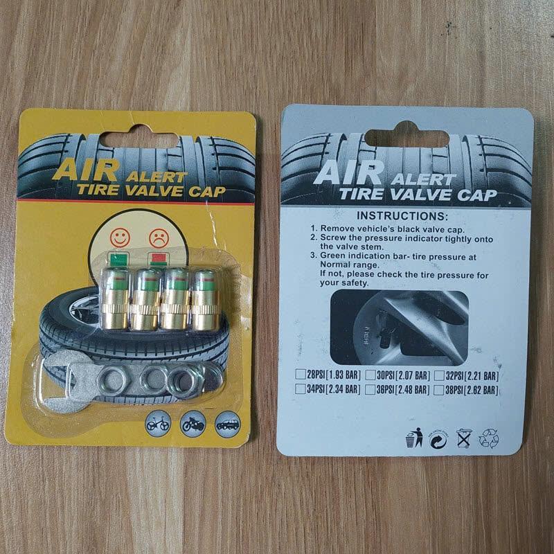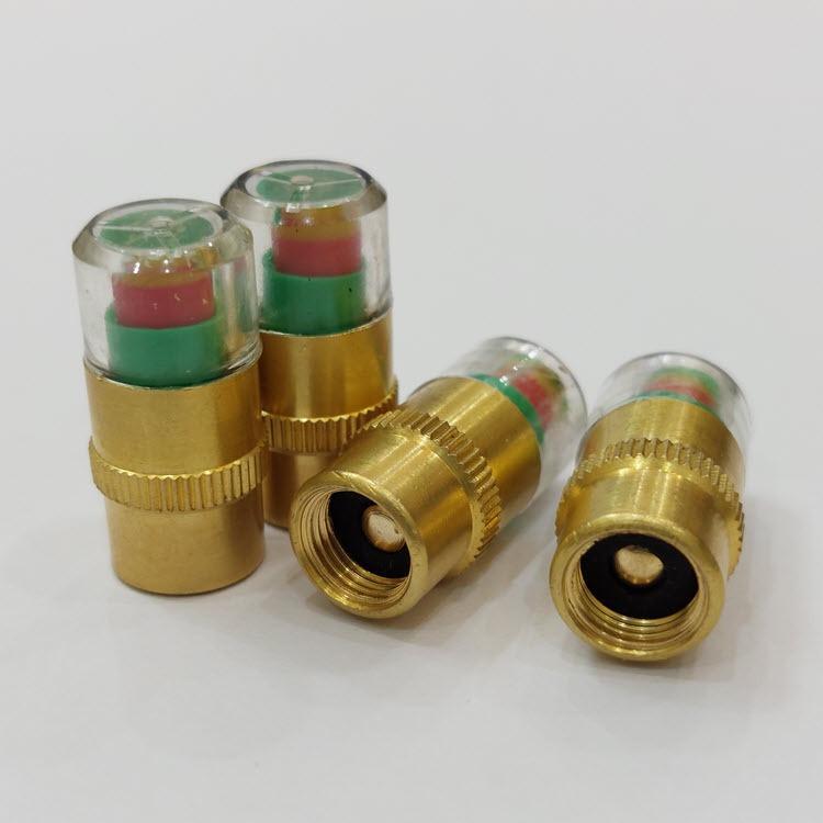 Bộ 4 Nắp Van Lốp Ô Tô bằng đồng Kiểm Tra cảnh báo Áp Suất Lốp có ốc hãm chống trộm, tặng kèm cờ lê lắp đặt dễ dàng
