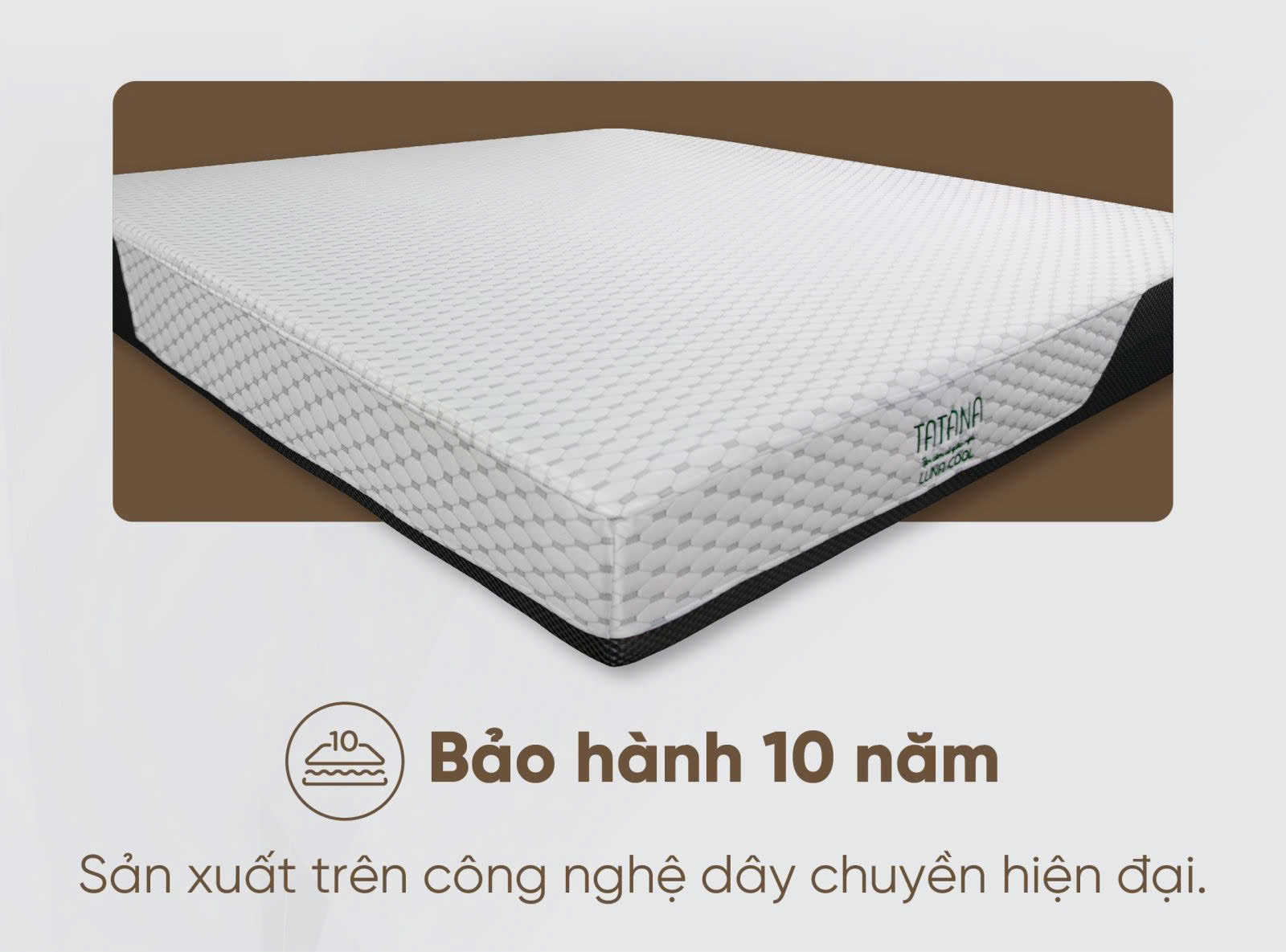 Nệm Luna Cool Tatana là dòng nệm có độ đàn hồi cao, giúp nâng đỡ trọn vẹn các đường cong cơ thể. Nệm Luna Cool được trang bị thêm lớp Gel Memory Foam xanh giúp nệm trở nên mát mẻ vào mùa hè và ấm áp vào mùa đông. Ngoài ra, nệm còn sở hữu nhiều ưu điểm khác nhau mang đến cho người dùng cảm giác thoải mái tối ưu khi nằm.
