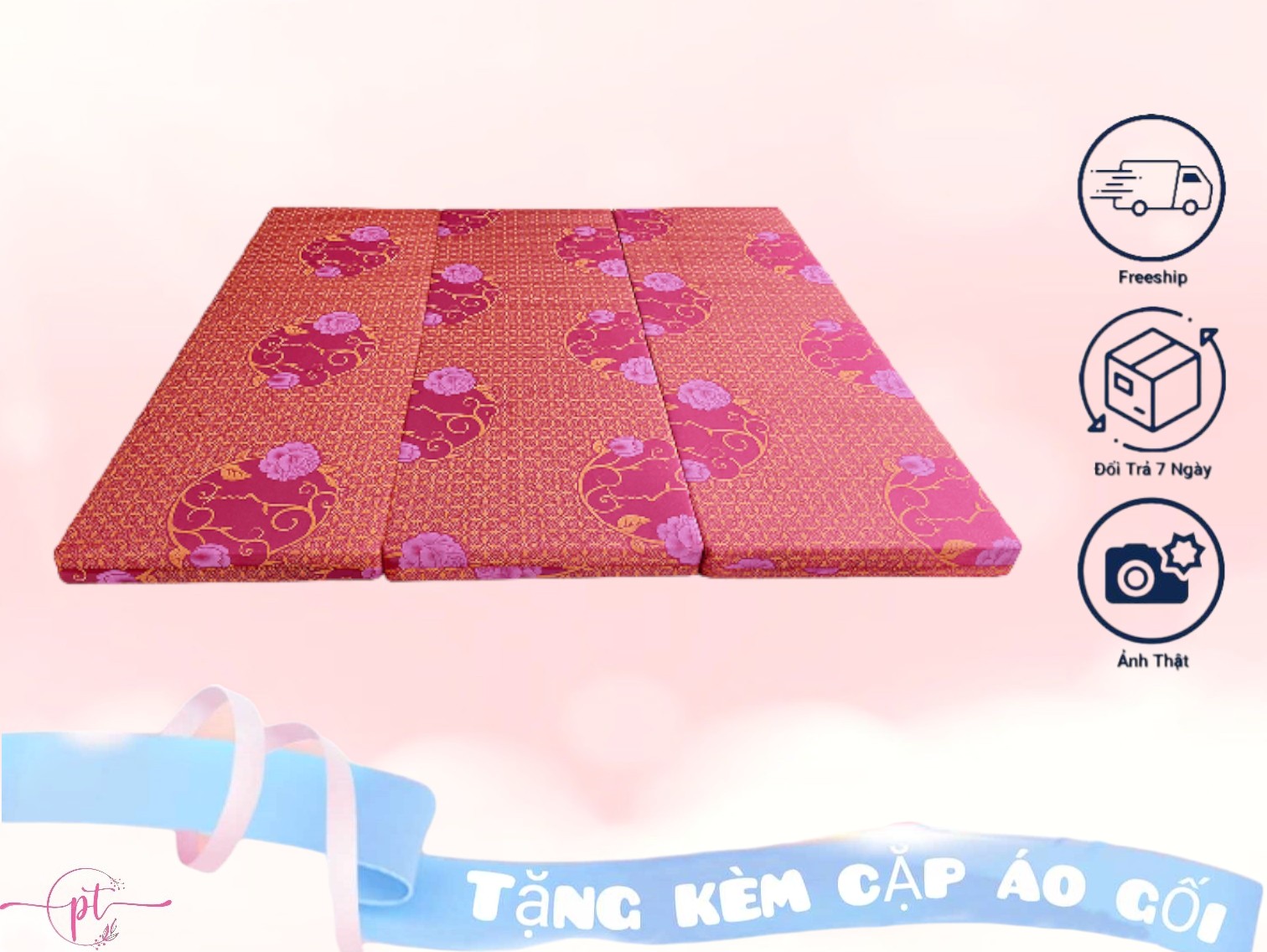 ✨Nệm PE Hàn Quốc Cao Cấp Gấp 3 ( 1m2 x 1m95 x 3cm) Giao Màu Ngẫu Nhiên - Tặng Kèm Cặp Áo Gối