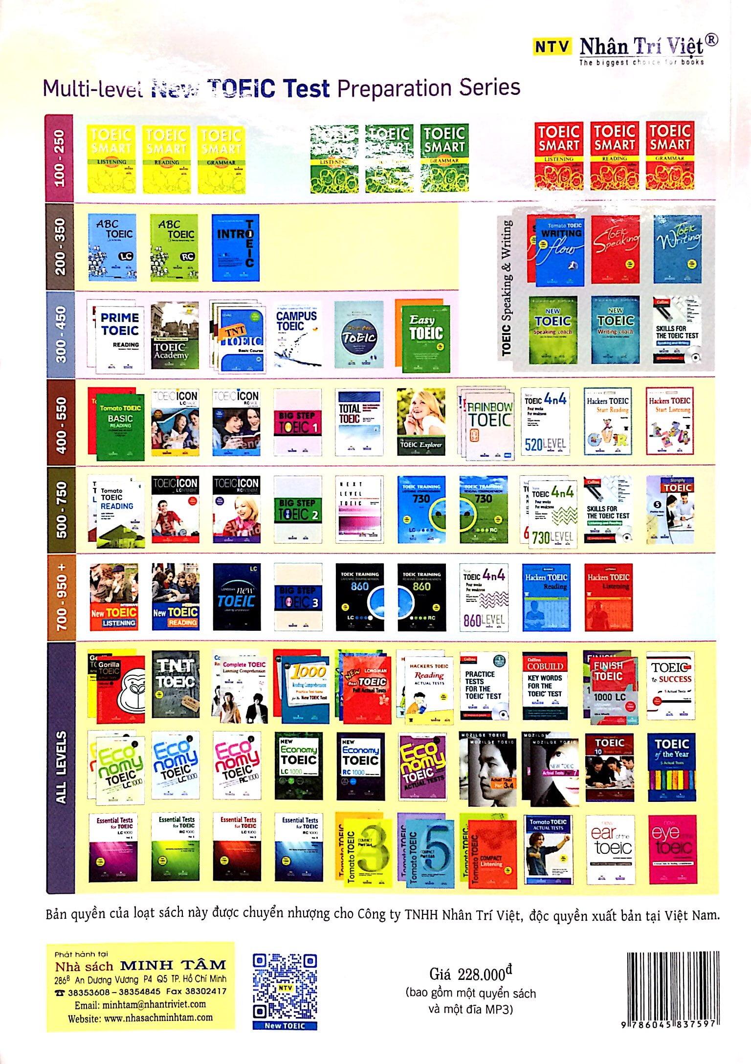 Trên thị trường hiện nay, có rất nhiều sách TOEIC dày đến 500 trang và mỗi bộ gồm có hai quyển: Listening và Reading. Tuy nhiên, tìm được quyển sách phù hợp với khả năng của bản thân bạn không phải là việc dễ dàng. Vì vậy, bộ sách này được chia thành 4 cấp độ: 520 điểm , 620 điểm , 730 điểm và 860 điểm . Ở mỗi cấp độ là các nội dung trọng tâm tương ứng. Nhờ vậy, người học có thể lựa chọn giáo trình phù hợp với trình độ của mình.