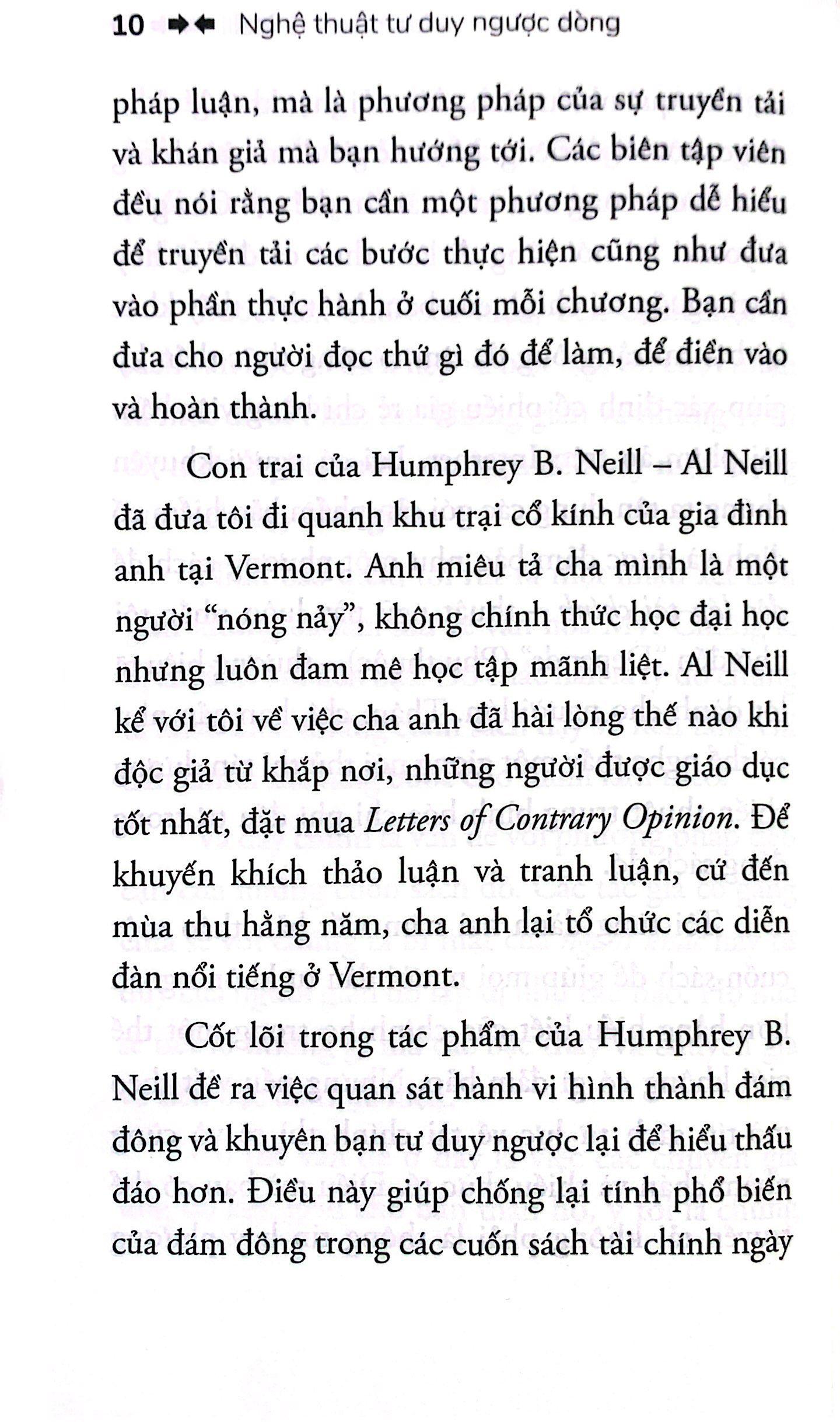 “Sự khắt khe và ham học hỏi được thể hiện qua những ghi chép của Neill đại diện cho tiếng nói của một độc giả luôn khao khát kiến thức hoặc một cách tư duy trước những tin tức xoay chuyển chóng mặt suốt 24 giờ và chủ nghĩa giật gân ngu ngốc đang khủng bố tinh thần chúng ta trong cuộc sống hiện đại… Trong các ghi chép của Neill, chúng ta sẽ biết đến phương pháp nhận thức thông qua lập luận bên trong, để trở thành những nhà tư tưởng tự do và độc lập hơn… Tác phẩm của ông nhắc nhở chúng ta rằng khi “nghiền ngẫm” và đào sâu vào tính biến động của thế giới, chúng ta sẽ cảm nhận tốt hơn thông qua việc hiểu thấu đáo sự thoái trào và dòng chảy của tư duy nhóm cũng như tâm lý đám đông. Đồng thời, chúng ta cũng không phải đối phó với mọi thứ, giảm thiểu được sai lầm có thể mắc phải trong đầu tư và cuộc sống bởi những quyết định vội vã…”