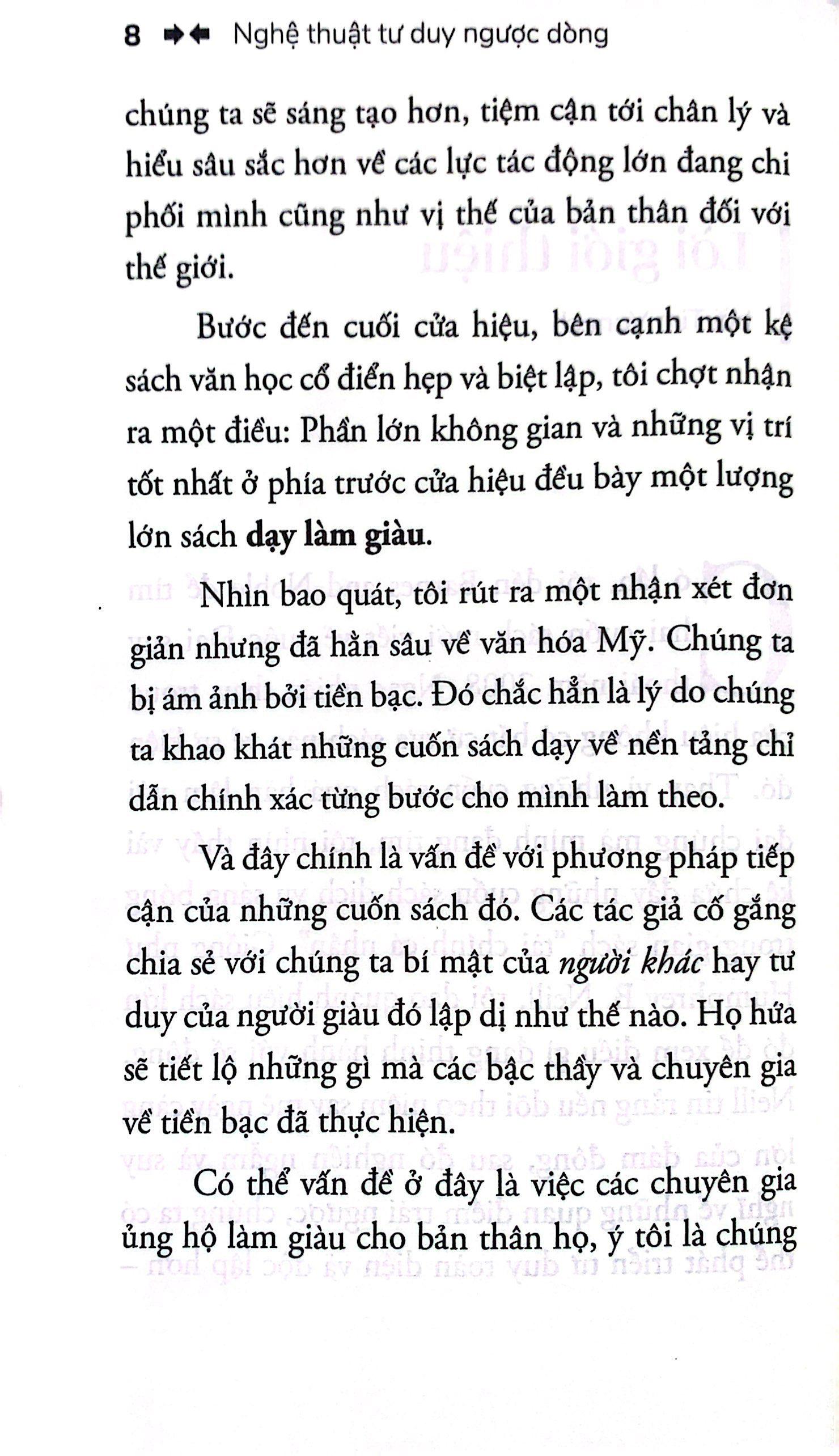Cốt lõi trong cuốn sách này là nó đề ra việc quan sát hành vi hình thành đám đông và khuyên bạn tư duy ngược lại để hiểu thấu đáo hơn. Điều này giúp chống lại tính phổ biến của đám đông trong các cuốn sách tài chính ngày nay. Tư duy đó chính là nhân tố tạo ra tính hiệu quả cho phương pháp nhìn nhận thế giới và tồn tại trong thế giới này.