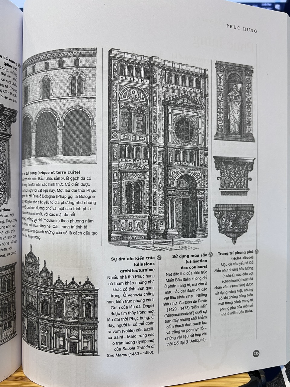Cuốn sách này bao gồm một tập từ vựng các thuật ngữ với định nghĩa ngắn gọn về những yếu tố được trình bày và được phân tích trong lời văn nên có thể hiểu được nhanh nhất. Hơn nữa, cả một phần cuốn sách giới thiệu mười yếu tố mà tất cả các nước hoặc hầu như tất cả các nước đều sử dụng trong kiến trúc của mình, đó là mái vòm, cột, tháp, cuộn và dây cuốn, cửa đi và cửa chính, cửa sổ, trán tường và hồi nhà, mái nhà, vòm, cầu thang.