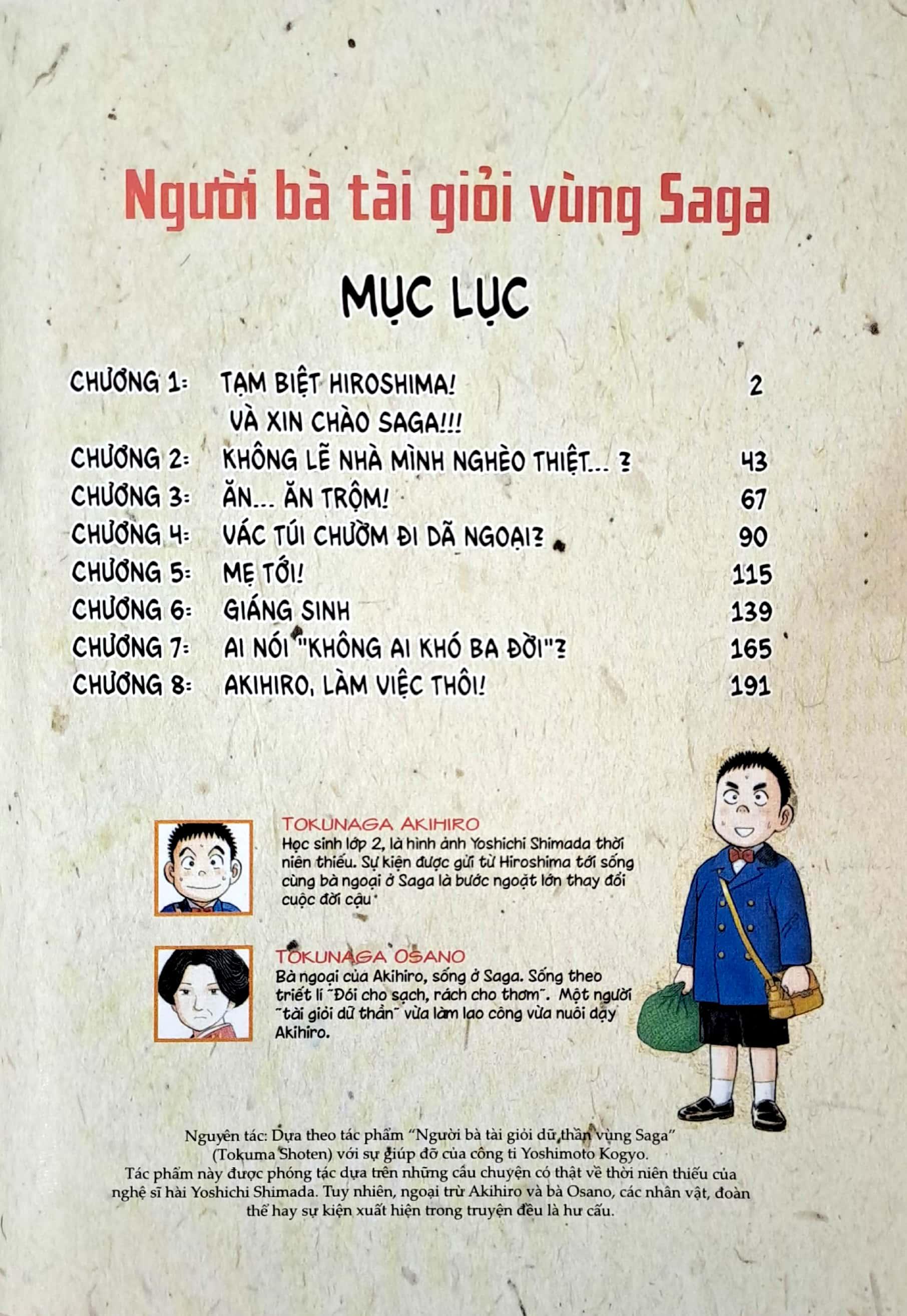 Qua những mẩu chuyện nhẹ nhàng xoay quanh cậu bé Akihiro và người bà “dữ thần”, bộ truyện “Người bà tài giỏi vùng Saga” truyền tải đến cho người đọc những thông điệp sâu sắc và đầy tính nhân văn về tình thân gia đình, tình người cũng như những giá trị tốt đẹp của cuộc sống. Bộ truyện này dành tặng bạn, dù bạn là ai, dù bạn ở lứa tuổi nào, để không ngừng lạc quan và vững tin tiến về phía trước!