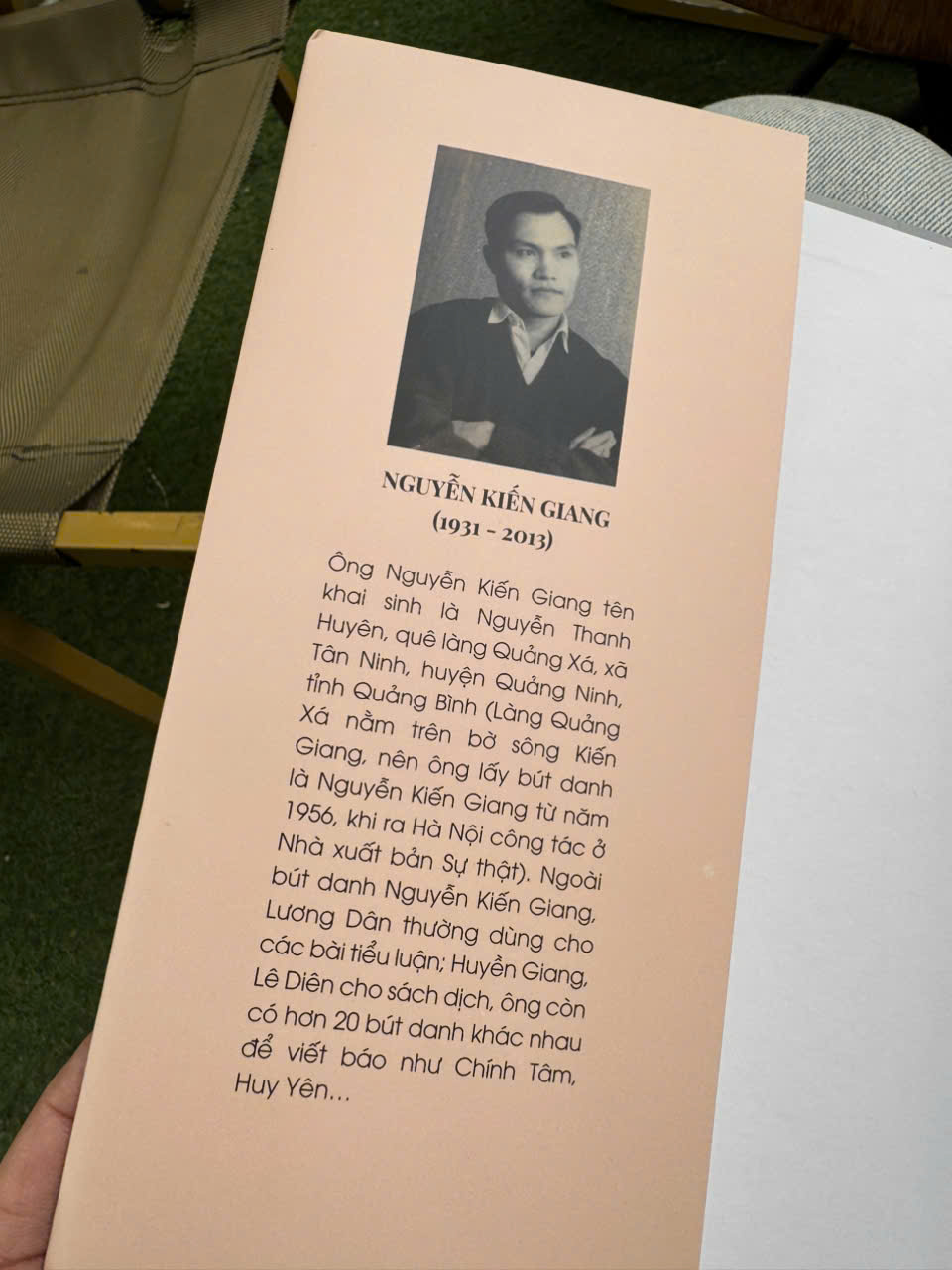 Ông Nguyễn Kiến Giang tên khai sinh là Nguyễn Thanh Huyên, quê làng Quảng Xá, xã Tân Ninh, huyện Quảng Ninh, tỉnh Quảng Bình (Làng Quảng Xá nằm bên sông Kiến Giang nên ông lấy bút danh là Nguyễn Kiến Giang). Di sản văn hóa của ông để lại có 30 đầu sách viết; 48 tác phẩm dịch; 62 tiểu luận, đề cương và 66 bài đăng trên các báo. Trong số đó có những tác phẩm (thường là các tiểu luận) như những bài phản biện về một chủ trương, chính sách nào đó ở thời điểm ấy thực sự đã mang lại cho ông không ít hiểm nguy, nhưng ông vẫn kiên định bày tỏ chính kiến. Chính cái sự ngay thẳng, giữ lòng lương thiện, chân thành chỉ ra cái sai trong lý luận của mỗi con đường đất nước đã lựa chọn… mà qua bao sóng gió ông vẫn sống và làm việc dù rất khó khăn. Các tiểu luận của ông thật đa dạng, đủ mọi đề tài đã vượt ra khỏi các giới hạn định chế của xã hội bấy giờ bởi chúng luôn cập nhật tri thức mới của thời đại, truyền tải về tự do, dân chủ, nhân quyền, pháp trị, những giá trị phổ quát mà ông mong muốn chúng trường tồn cùng đất nước trong tương lai. Có điều, gần như tất cả những tiểu luận ấy của ông từ khi “ra đời” chúng vẫn chưa được xuất bản chính thức, mà chỉ được chuyền tay nhau giữa các giới nghiên cứu vào hai thập niên cuối của thế kỷ trước. Chính vì vậy, nay một số di cảo của ông được chọn để xuất bản và chia ra làm hai ấn phẩm: