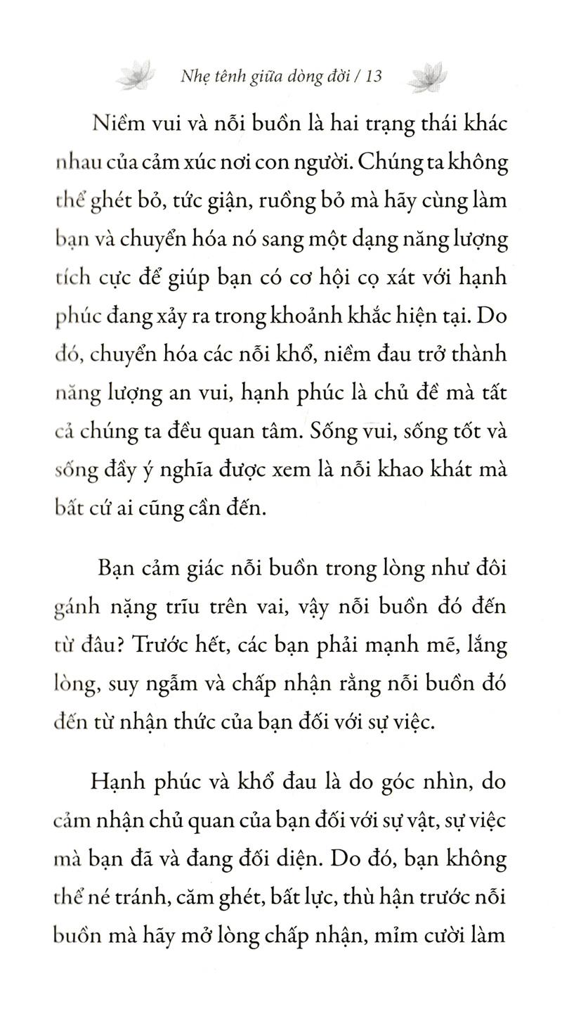 Niềm vui và nỗi buồn là hai trạng thái khác nhau của cảm xúc nơi con người. Chúng ta không thể ghét bỏ, tức giận, ruồng bỏ mà hãy cùng làm bạn và chuyển hóa nó sang một dạng năng lượng tích cực để giúp bạn có cơ hội cọ xát với hạnh phúc đang xảy ra trong khoảnh khắc hiện tại. Do đó, chuyển hóa các nỗi khổ, niềm đau trở thành năng lượng an vui, hạnh phúc là chủ đề mà tất cả chúng ta đều quan tâm. Sống vui, sống tốt và sống đầy ý nghĩa được xem là nỗi khao khát mà bất cứ ai cũng cần đến.