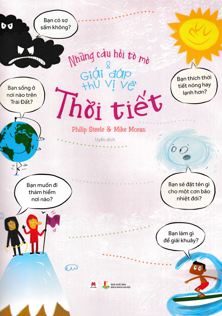 Những Câu Hỏi Tò Mò Và Giải Đáp Thú Vị Về Thời Tiết “HẺM LỐC XOÁY nằm ở đâu?” “Vì sao GIÓ lại thổi?” Bạn có nhiều câu hỏi TÒ MÒ không? Những câu hỏi lý thú sẽ giúp bé giải đáp trong cuốn sách này Cuốn sách này đầy ắp những câu trả lời rất ấn tượng đang chờ bạn khám phá đấy! Nhiều hình minh họa dí dỏm cùng những sự thật đáng kinh ngạc, giải mã mọi điều hoang dại, tuyệt vời cũng như vô cùng kỳ quặc về THỜI TIẾT, tất cả đều nằm trong cuốn sách sinh động này! Hình ảnh sinh động, đầy màu sắc thu hút trẻ cùng khám phá