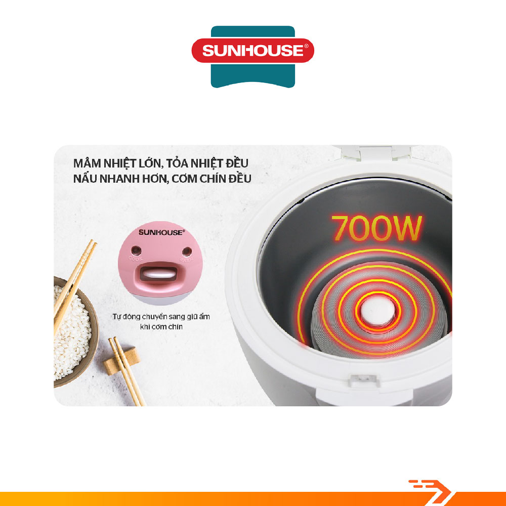 Nồi cơm điện SUNHOUSE 1.8L SHD8602 KIỂU DÁNG TRẺ TRUNG – TIỆN DỤNG VÀ AN TOÀN Thiết kế đơn giản, trẻ trung và an toàn Nồi cơm điện SUNHOUSE 1.8L SHD8602 được thiết kế với