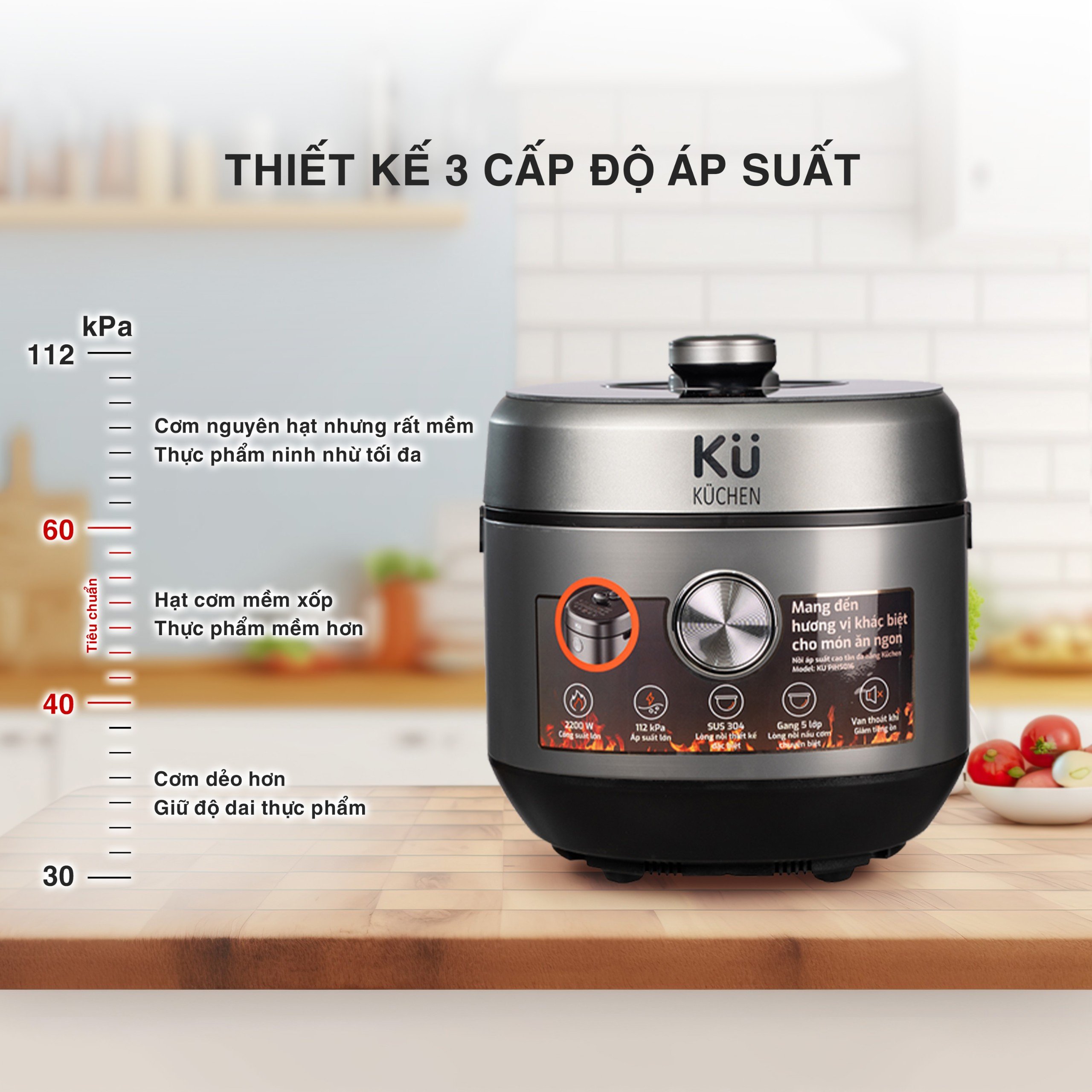 Nồi áp suất cao tần đa năng KUPIH5016 được thiết kế 3 cấp độ áp suất với áp suất có thể điều chỉnh từ 30-112 kPa.