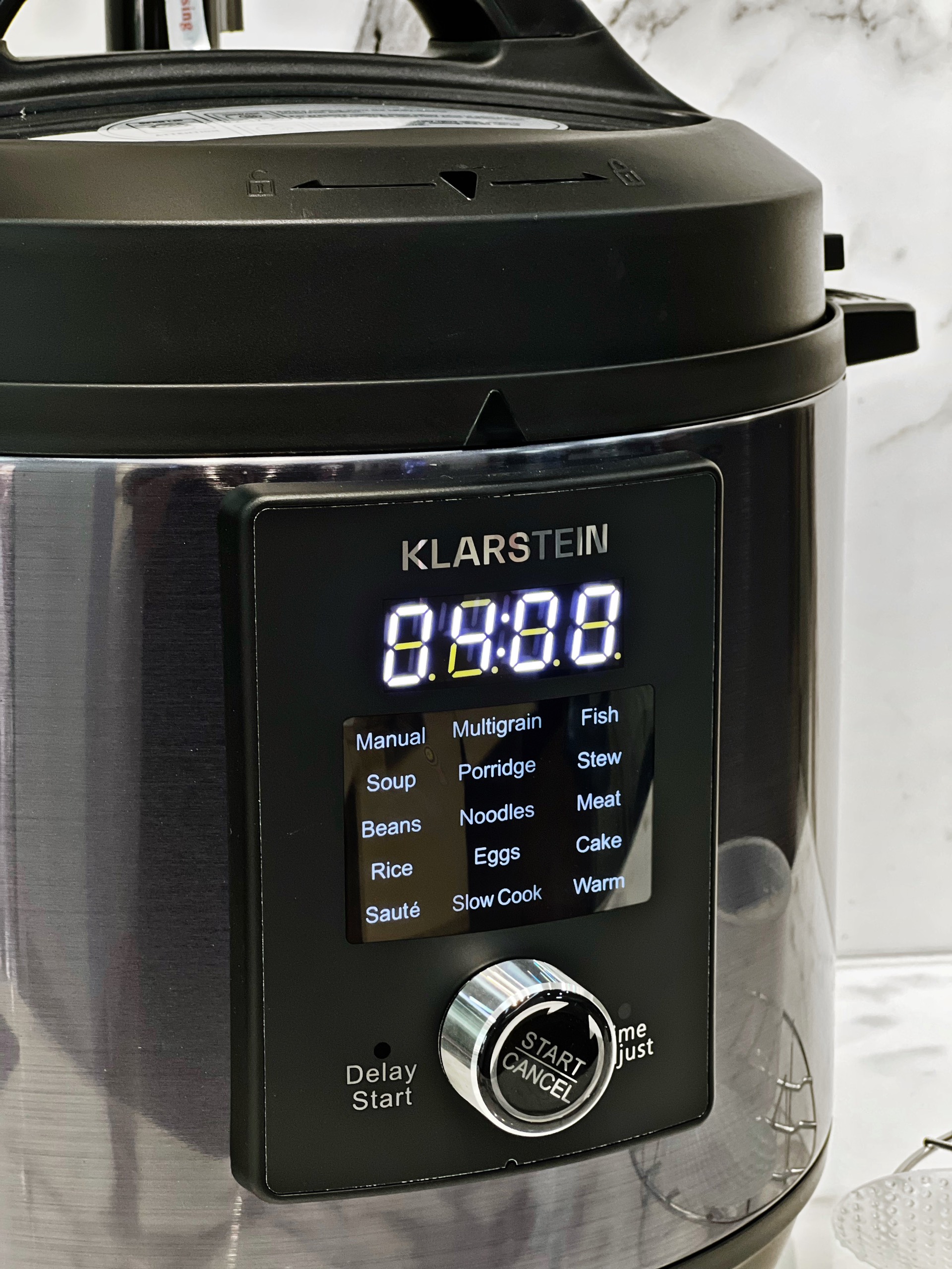 Đặc điểm nổi bật của Nồi áp suất điện đa năng Klarstein 4.8 lít Nhiều chức năng nấu: nấu nhanh, áp chảo và nấu chậm trong một. Bếp từ đa chức năng Quick Cook của Klarstein