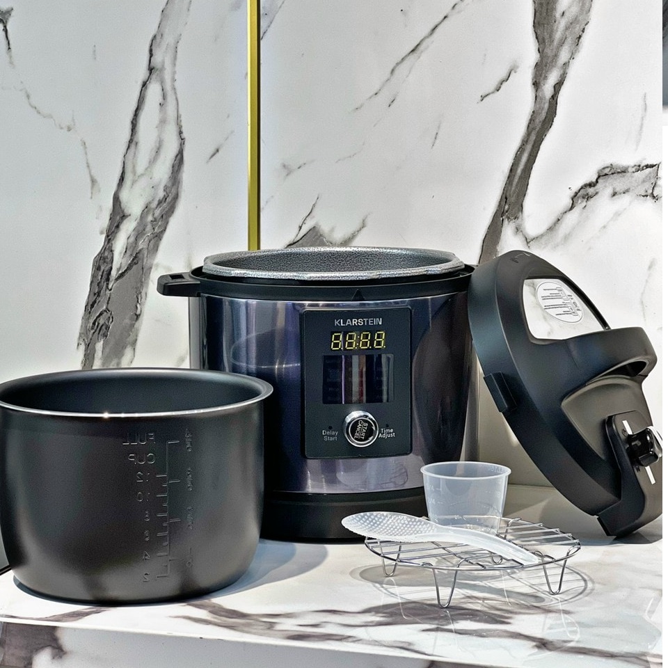 Đặc điểm nổi bật của Nồi áp suất điện đa năng Klarstein 4.8 lít Nhiều chức năng nấu: nấu nhanh, áp chảo và nấu chậm trong một. Bếp từ đa chức năng Quick Cook của Klarstein